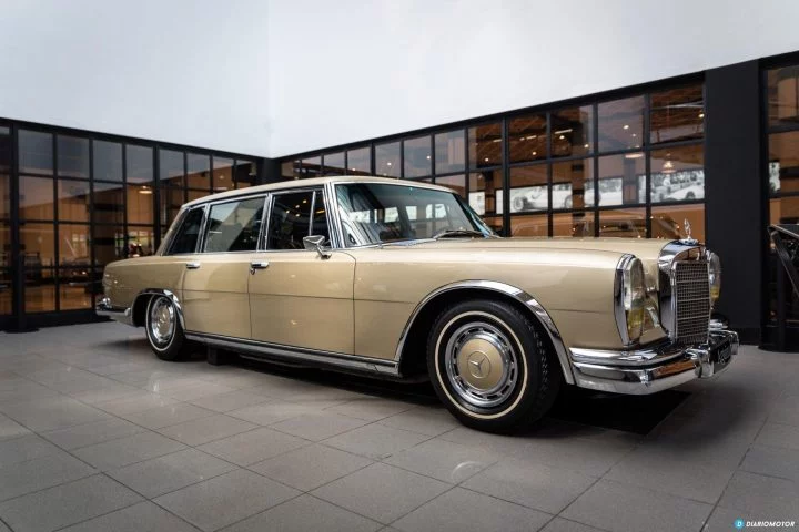 Antes de saltar de década, no podemos olvidar al precioso Mercedes 190 SL. Un roadster que se vendió especialmente bien en Estados Unidos. Era considerablemente más barato que el 300 SL “alas de gaviota”, pero era casi tan bonito. Aunque sólo tenía 105 CV, era un coche muy ligero y las versiones SLR enfocadas a la competición cubrían la sed de altas prestaciones de algunos de sus propietarios. La única ausencia reseñable en la colección del museo es precisamente el hermano mayor del 190 SL, el fantástico 300 SL – cuya cotización en el mercado de clásicos ronda actualmente el millón de euros. Pero pronto me olvido del 300 SL, cuando aparece ante mí uno de los Mercedes más especiales de todos los tiempos. Uno de los coches que mejor define los valores tradicionales de la marca. El Mercedes 600 W100, conocido como “Grosser”.