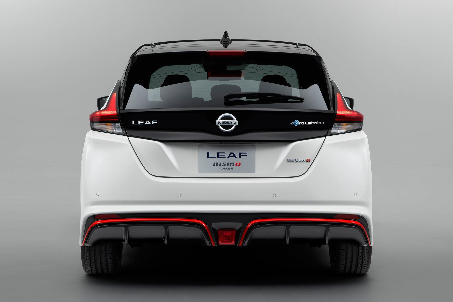 El diseño del nuevo kit de carrocería se ha llevado a cabo sin sacrificar el rendimiento aerodinámico del coche – su coeficiente aerodinámico es de 0,28, más que competente para un segmento C – una de las claves de su autonomía NEDC de 378 kilómetros. Aún así, Nissan Motorsport se las ha ingeniado para acercar el coche más al suelo, añadiendo un splitter delantero, nuevas estriberas y un agresivo difusor trasero. NISMO también ha instalado unas nuevas llantas de al menos 17 pulgadas, equipadas con neumáticos de corte más deportivo. Este punto sí afectará negativamente a la autonomía del eléctrico.