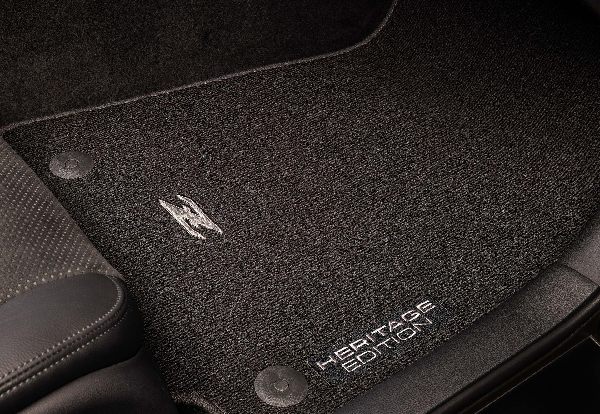 Por si fuera poco, en el spoiler trasero y en la parte inferior de las puertas puede leerse «Twin Turbo» en la misma tipografía que tenía el Nissan 300ZX. Todo un guiño al icónica Z32 de finales de los ochenta y principios de los noventa, de arquitectura mecánica casi idéntica. El spoiler, por cierto, es de fibra de carbono y tanto los vanos de las puertas como las alfombrillas son específicos a los Heritage Edition.