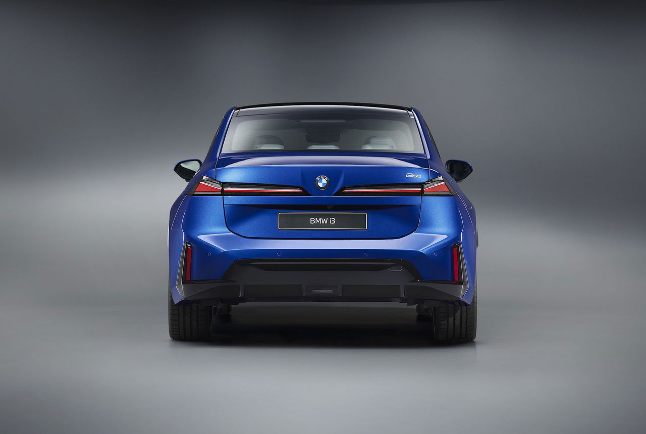 La primera de ellas la vemos en el diseño del i3. Aquí nos encontramos con una berlina de 4,76 metros de largo que se acoge al lenguaje introducido por el iX3. Es decir, la llamada Neue Klasse de BMW que nos deja con un imponente frontal con dos faros en posición horizontal, un diseño suave y estilizado en general, llantas de hasta 21 pulgadas y una zaga con dos pilotos que emulan de nuevo dicha posición pero que no llegan a tocarse entre sí.