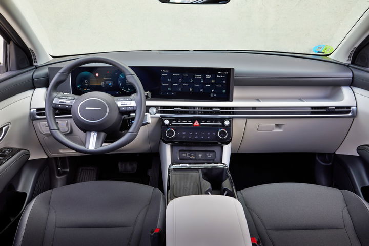 Hablamos concretamente del Hyundai Tucson 1.6 T-GDI HEV de 215 CV en acabado Klass, la versión de la oferta en cuestión. Es una de las configuraciones más lógicas de la gama, tanto por mecánica como por equipamiento y precio, y también de las más vendidas. Lleva el tipo de motor más vendido actualmente en nuestro país (híbrido no enchufable), tiene buenas prestaciones (hace el 0 a 100 en 8 segundos) y un consumo de 5,7 l/100 km, muy razonable para su tamaño.