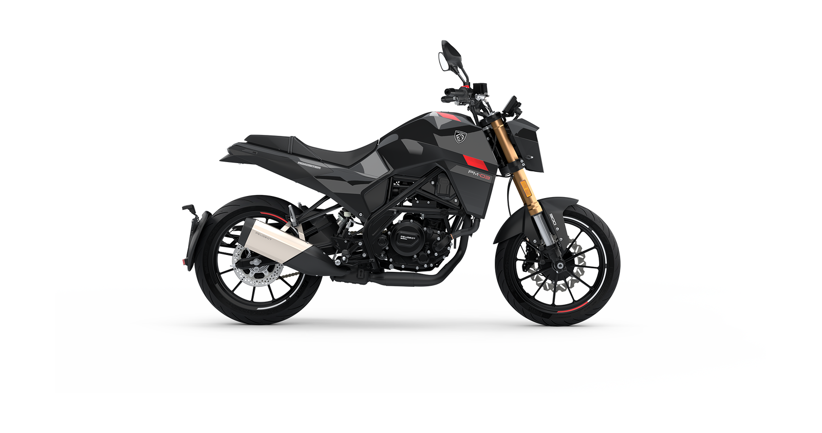 La motorización elegida para mover a la Peugeot PM-03 cuenta con 292,4 centímetros cúbicos, inyección electrónica, refrigeración líquida, cuatro válvulas y desarrolla 29,2 CV de potencia a 9.000 rpm, con un par máximo disponible de 24,5 Nm a 7.000 rpm. La transmisión es de seis velocidades y cuenta con embrague manual bañado en aceite.