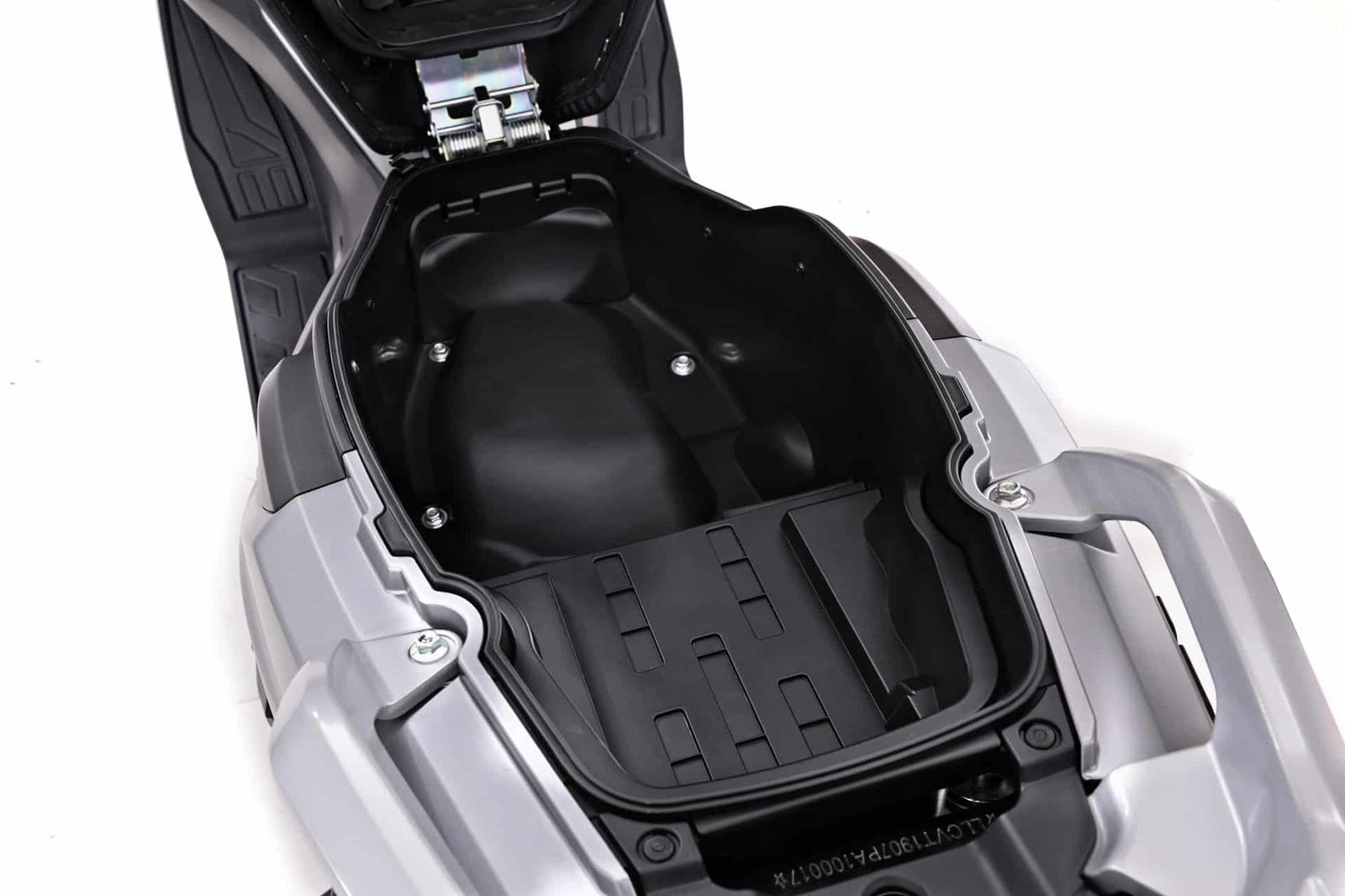 La dotación se completa con una instrumentación digital con ordenador de viaje, sistema de arranque sin llave, guantera tras el escudo, hueco bajo el asiento de 29 litros para un casco y alguna cosa más, toma USB, estriberas laterales abatibles, pata lateral, etc. Además la promoción actual permite llevarte un SR1 con TopCase de 29 litros por 50 € y el seguro gratis durante el primer año.