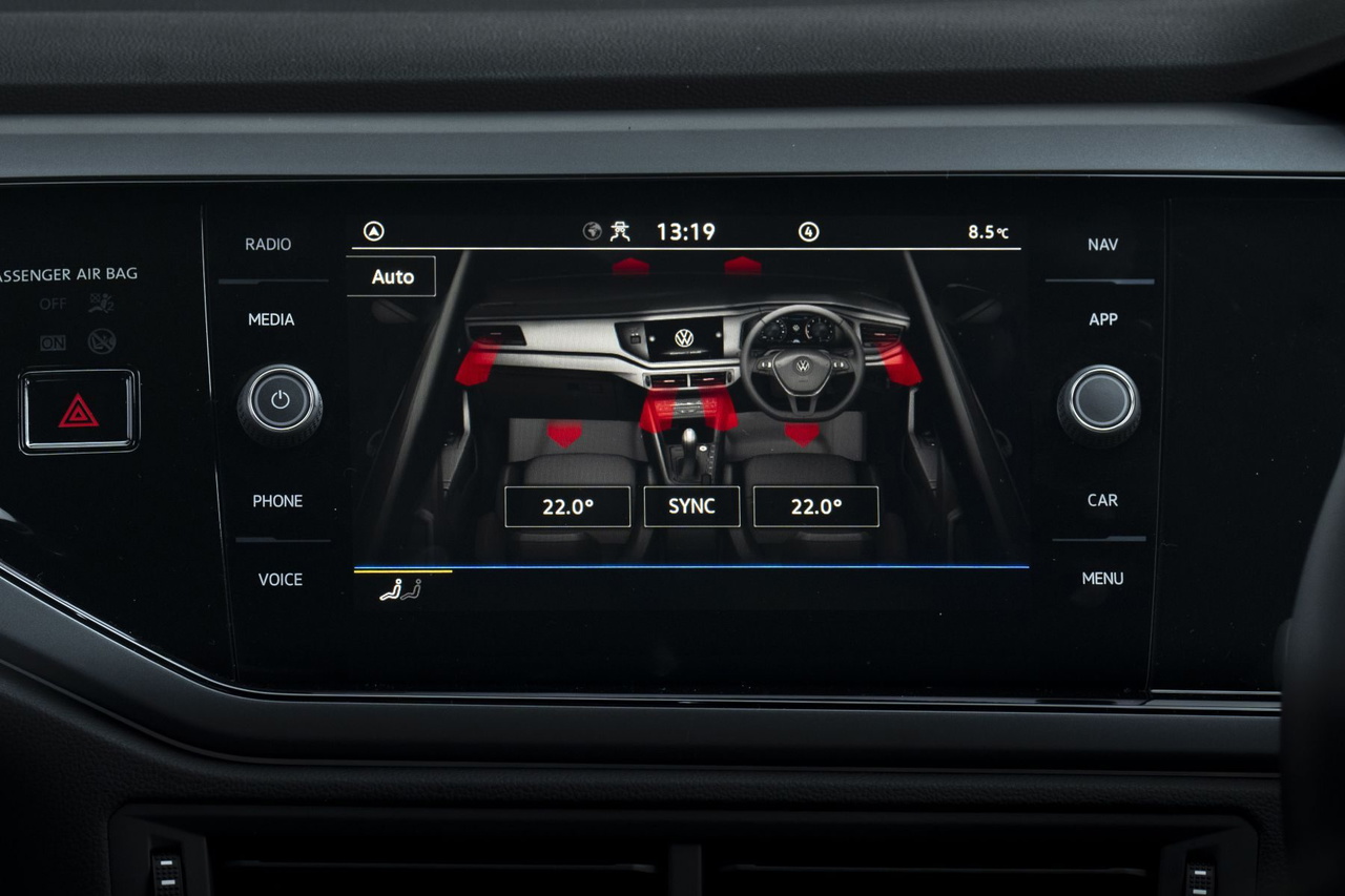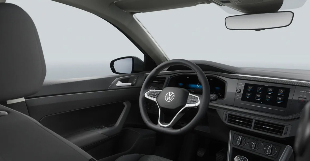 El nivel de acabado más sencillo en la gama del Volkswagen Polo es el denominado Match. En seguridad cuenta con los faros EcoLED con encendido automático, alerta y asistente de carril involuntario, asistente de velocidad inteligente, sensores de estacionamiento trasero, Front Assist, detector de fatiga y peatones, control de crucero con limitador, etc.