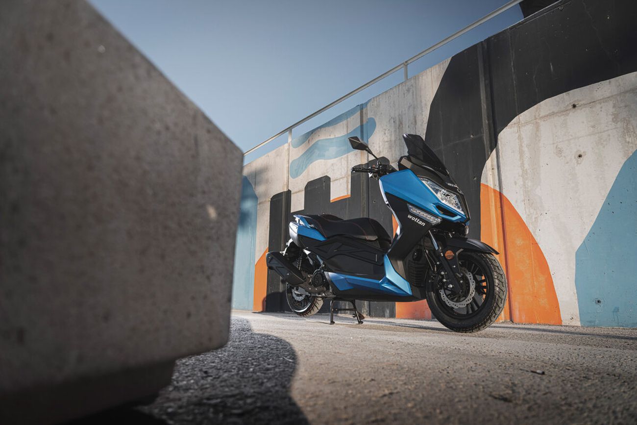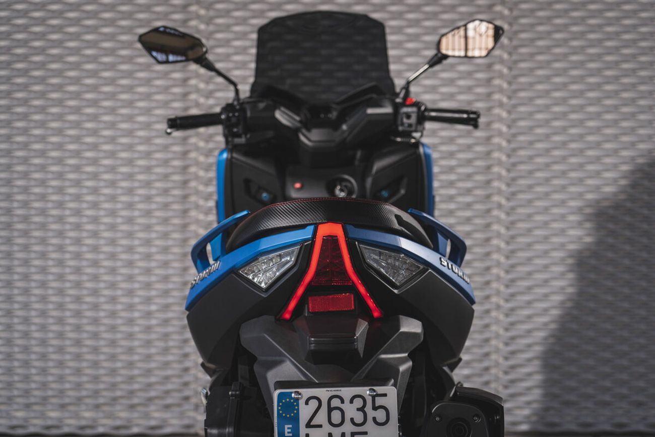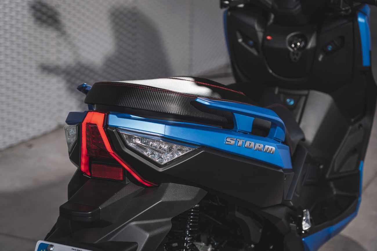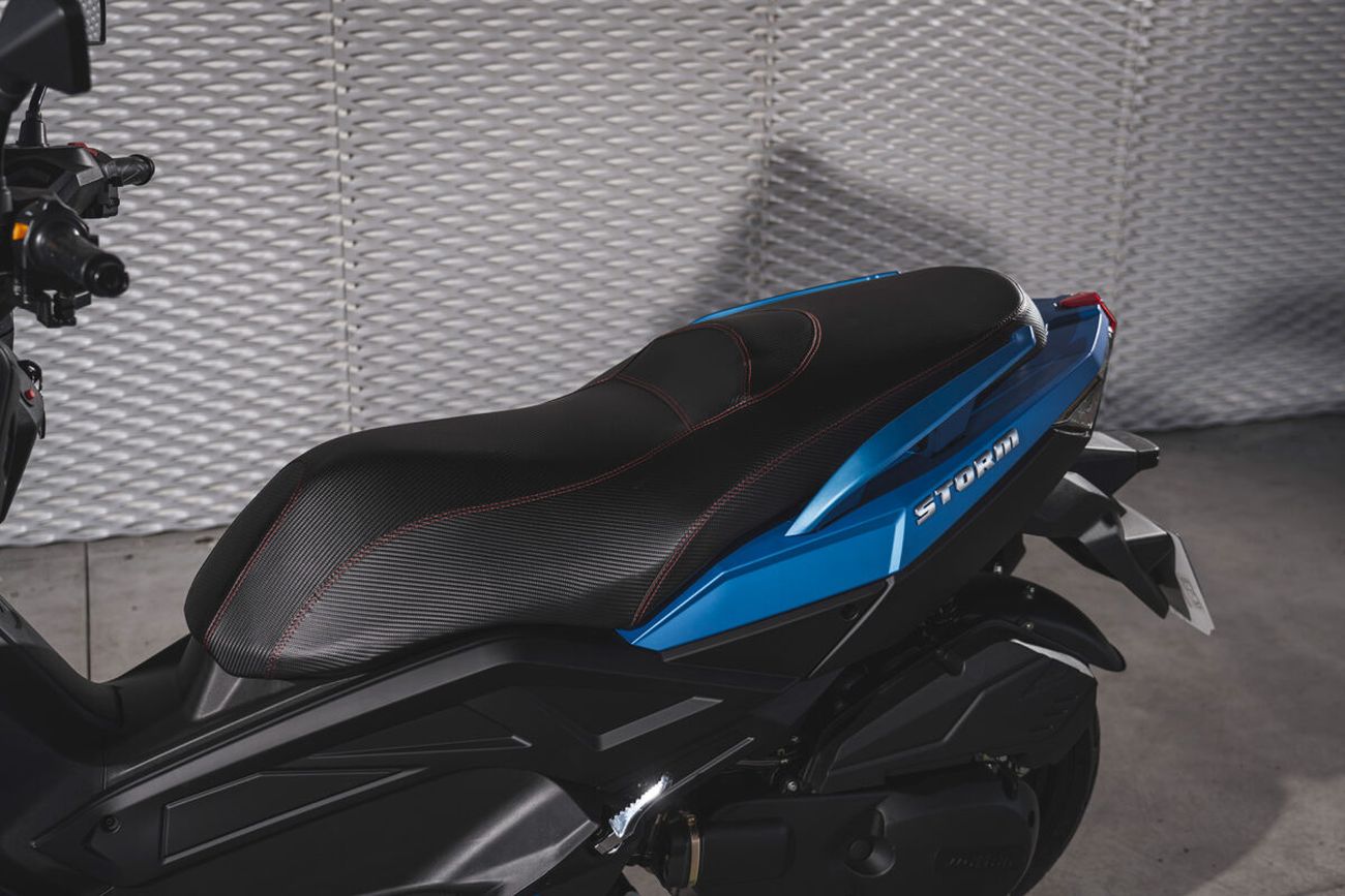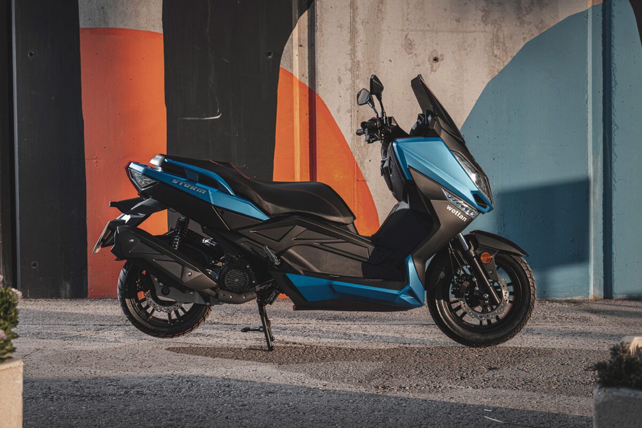 Otros elementos de equipamiento incluidos en el Wottan Storm 125 son la cúpula ahumada, bloqueo de llave de contacto, dos guanteras tras el escudo (una de ellas con toma USB), completa instrumentación digital, luces traseras con tecnología LED, estriberas abatibles, caballete central y pata lateral.