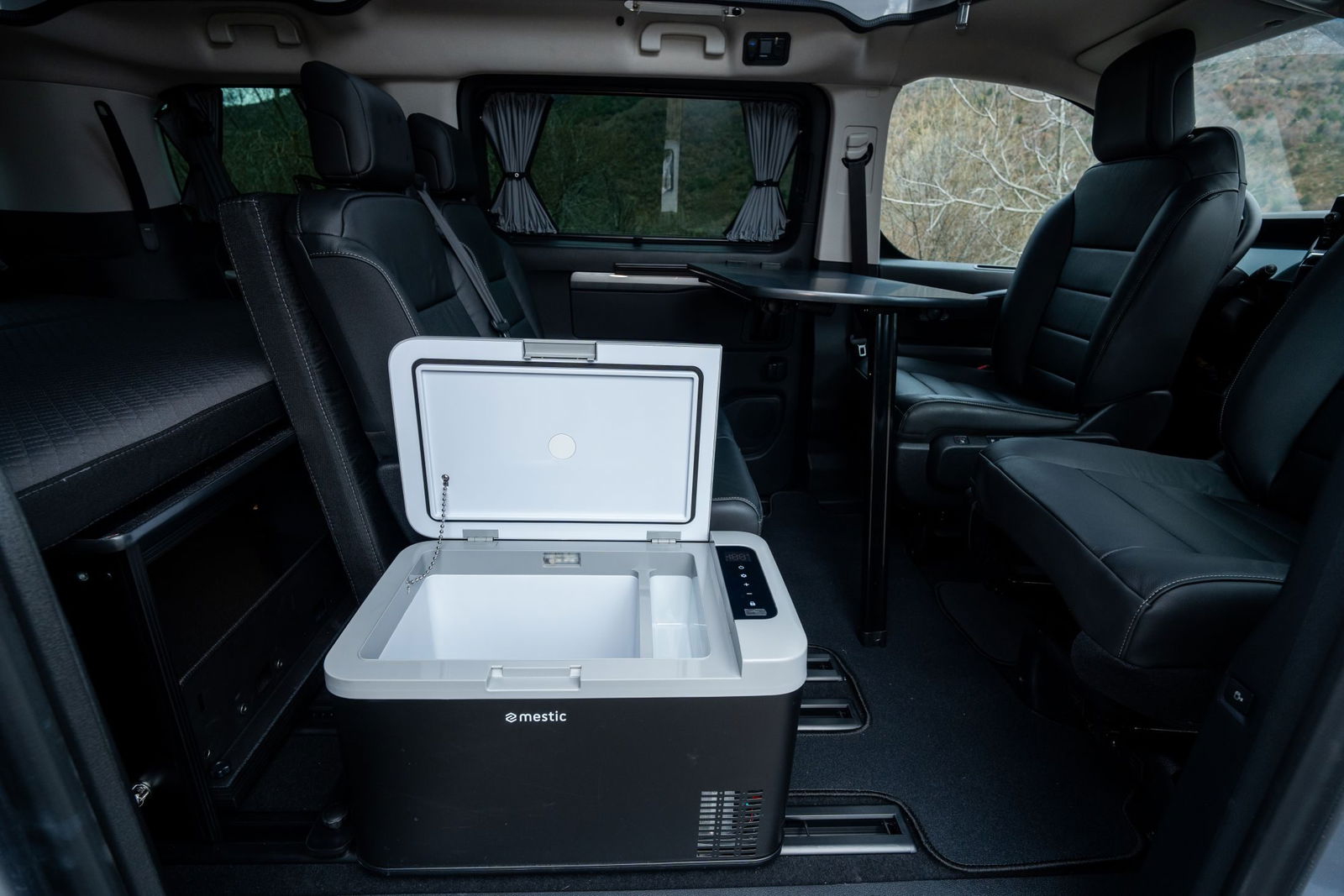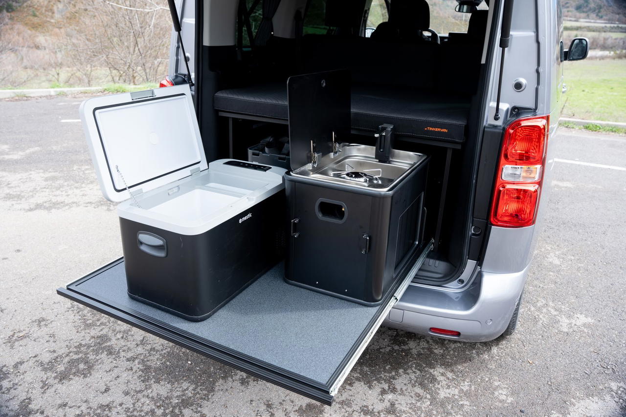 Entre los accesorios que ya te permiten hacer vida durante cortas estancias con total garantía hay que señalar la nevera portátil de 25 litros a compresor (de bajo consumo), cocina portátil en modulo extraíble, cortinas laterales para las ventanillas de las filas traseras más portón, toldo exterior, bola de remolque, portabicis trasero, toma exterior de corriente 220v, etc.