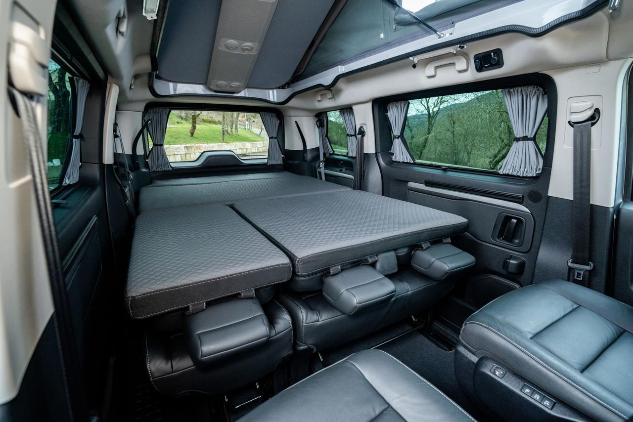 Tomando como base de partida la Opel Zafira hay muchas posibilidades disponibles de camperización en Tinkervan. El paso más importante es instalar un techo elevable en el que podrás añadir una cama doble de 1,3 metros de ancho por dos metros, perfecta para adultos. Además este techo cuenta con mosquiteras y un cómodo colchón viscoelástico que garantiza un excelente descanso.