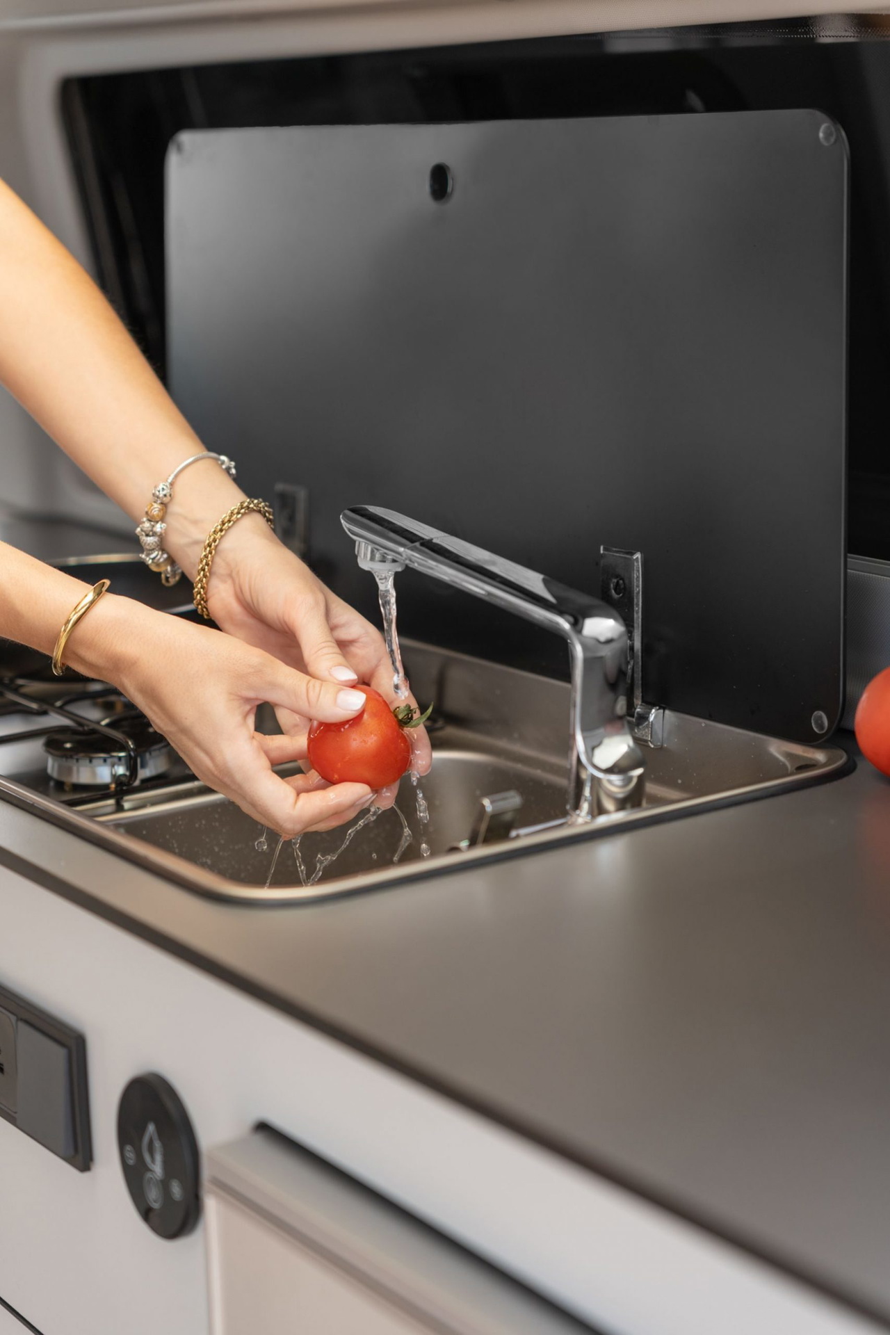 En la zona de vivienda hay que destacar el techo elevable pop-up con cama de matrimonio, mesa interior, nevera de 36 litros de apertura superior, cocina doble a gas, fregadero, ducha exterior, armarios con iluminación, oscurecedores para cabina, tomas de 12v y 220v, cajón bajo banqueta trasera (que se hace cama), pack LED interior completo, boiler de agua caliente, interior completamente aislado, etc.