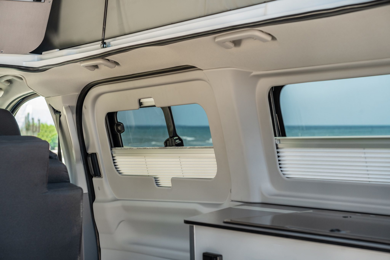 Entre las opciones más interesantes hay que señalar el toldo exterior, neumáticos M+S, llantas de aleación de 19 pulgadas, panel solar de 185W, oscurecedores de cabina, enganche de remolque, colchón adicional, mosquitera posterior para portón, pack Living (calefacción Webasto, Inversor, ducha portátil), Pack Safety (control de crucero adaptativo, navegador, detector de ángulo muerto, etc).