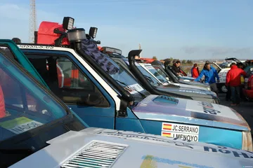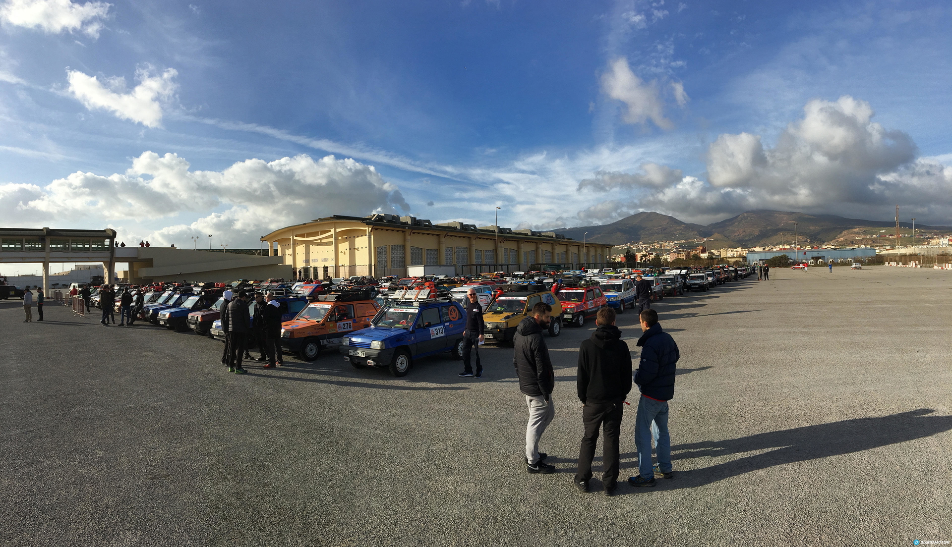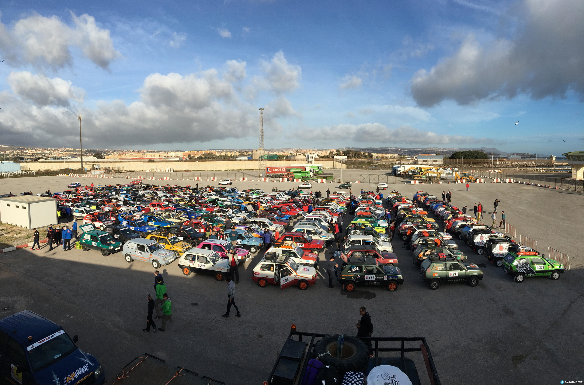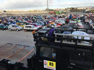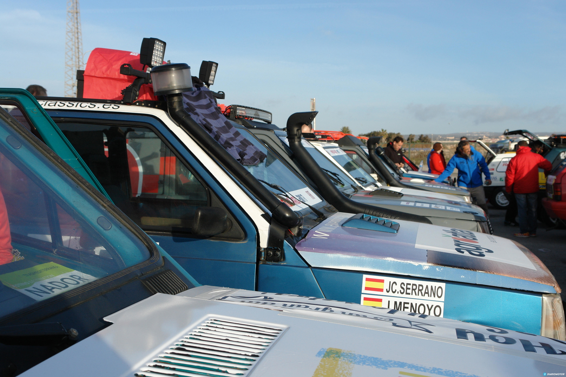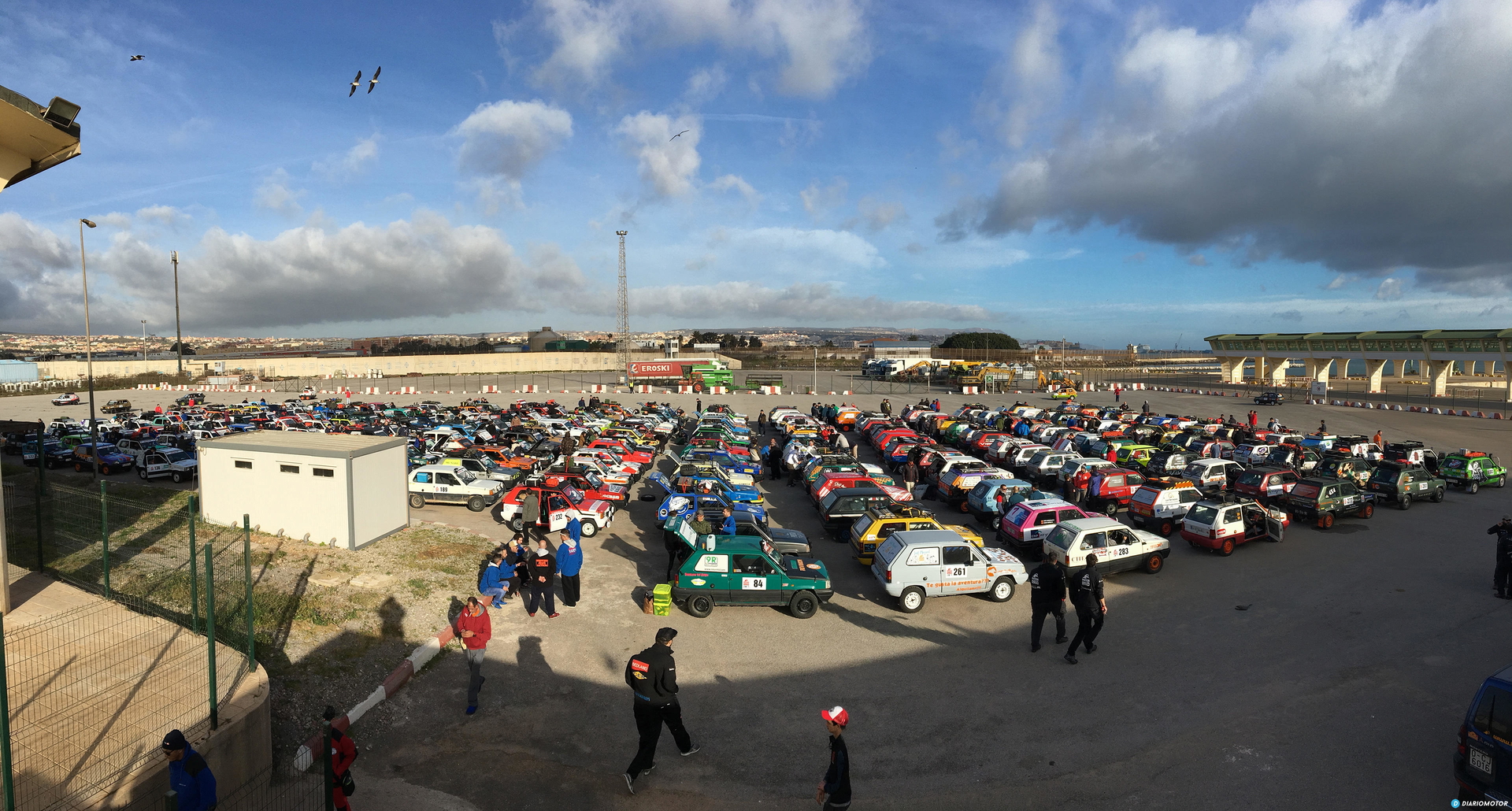 La parrilla de salida en el puerto de Nador es espectacular. 300 coches y 600 participantes nos reunimos en una explanada junto al barco para recibir las primeras instrucciones y el resumen de la etapa por parte de la organización. Básicamente nos recuerdan el reglamento y se aseguran de que quienes no lo hayan leído respeten al menos lo básico y entiendan lo más importante. Al principio me sorprende y hasta me ofende que nos traten como indocumentados, cuando nos han enviado el reglamento con semanas de antelación, pero pronto descubriré que muchos no se han molestado ni en echarle un vistazo y que hay tantos planteamientos del Panda Raid como participantes inscritos.