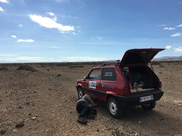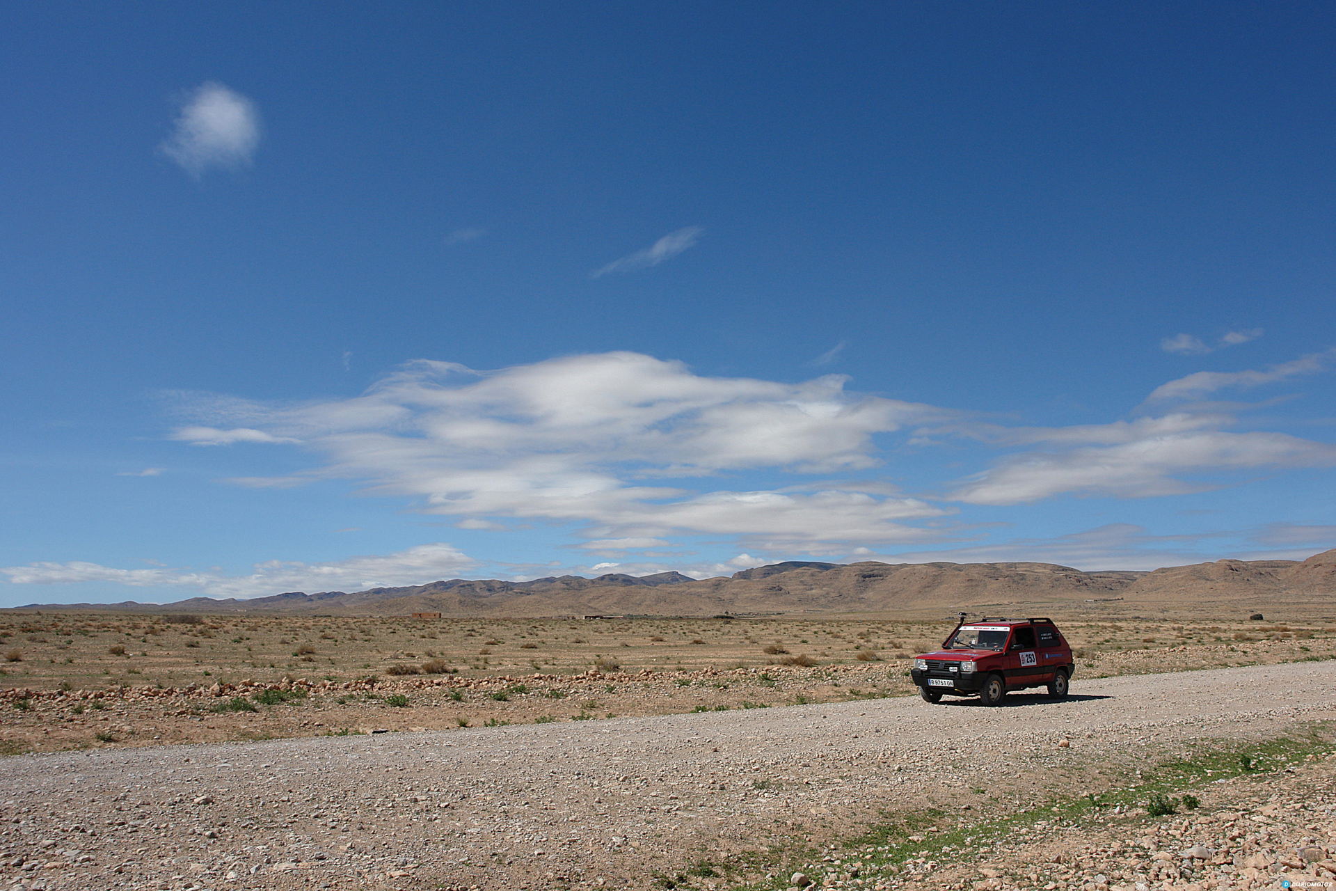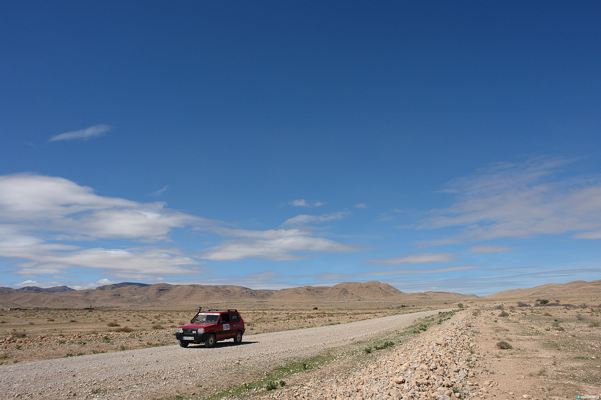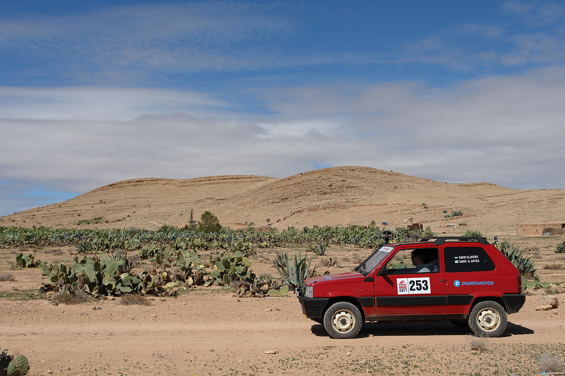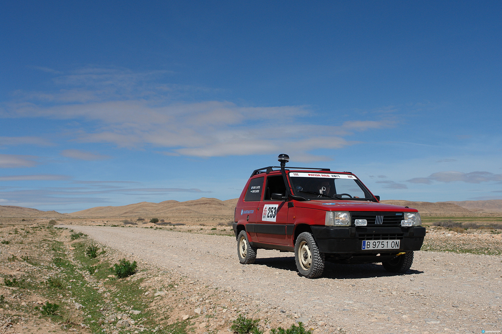 Tras una noche de película (de terror) llegamos a las costas de África, donde el sol ya no nos abandonará hasta nuestro regreso a España. Empieza lo bueno. Es hora de coger el road-book del Panda Raid y empezar a seguir las instrucciones para llegar a la meta, que el primer día no tiene límite de tiempo. ¿En qué consiste una etapa? ¿Cómo se sigue el road-book? ¿Cómo es el campamento? ¿Cómo es conducir por Marruecos y la gente de aquí? Estas y otras preguntas quedarían resueltas al final del primer día de competición.