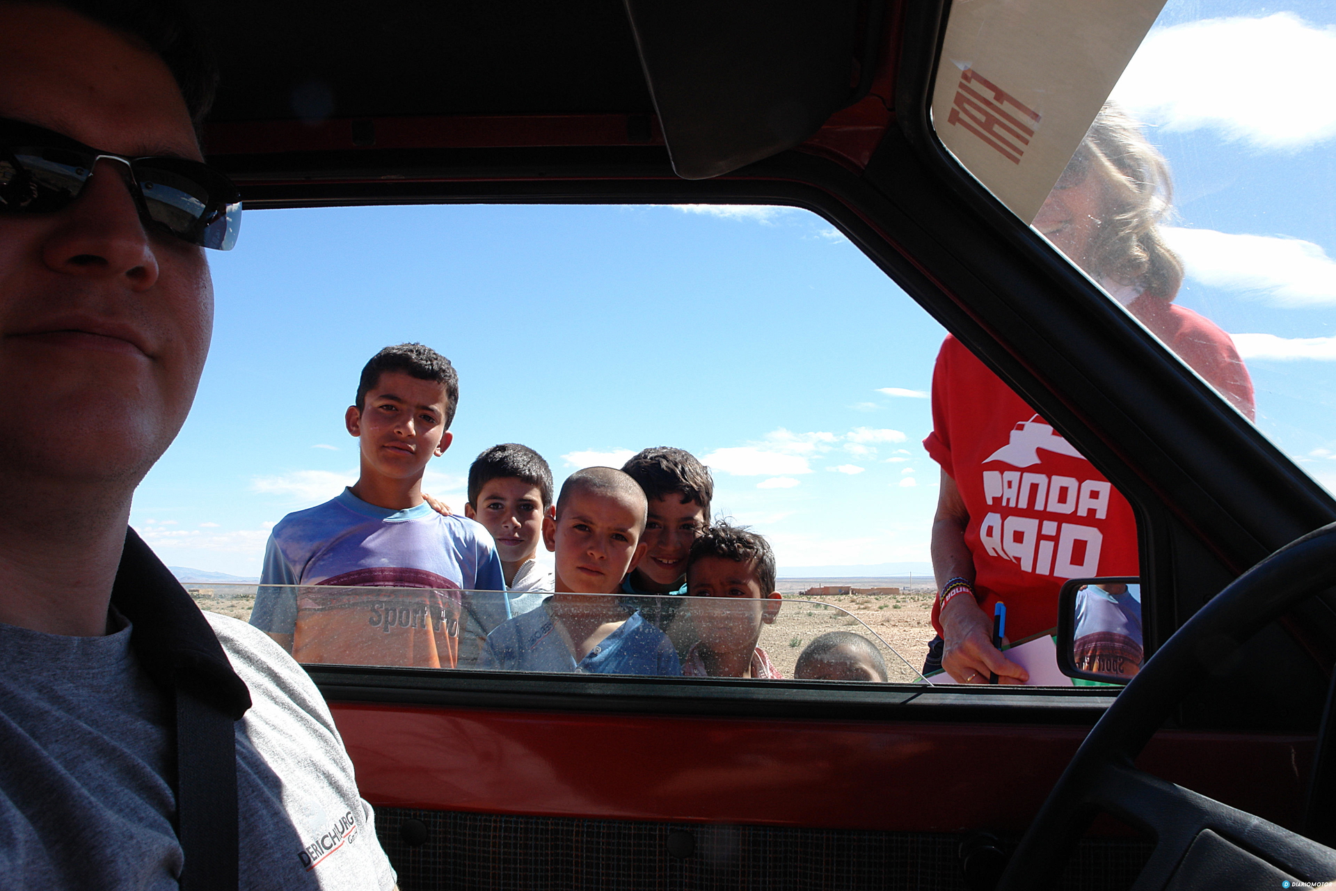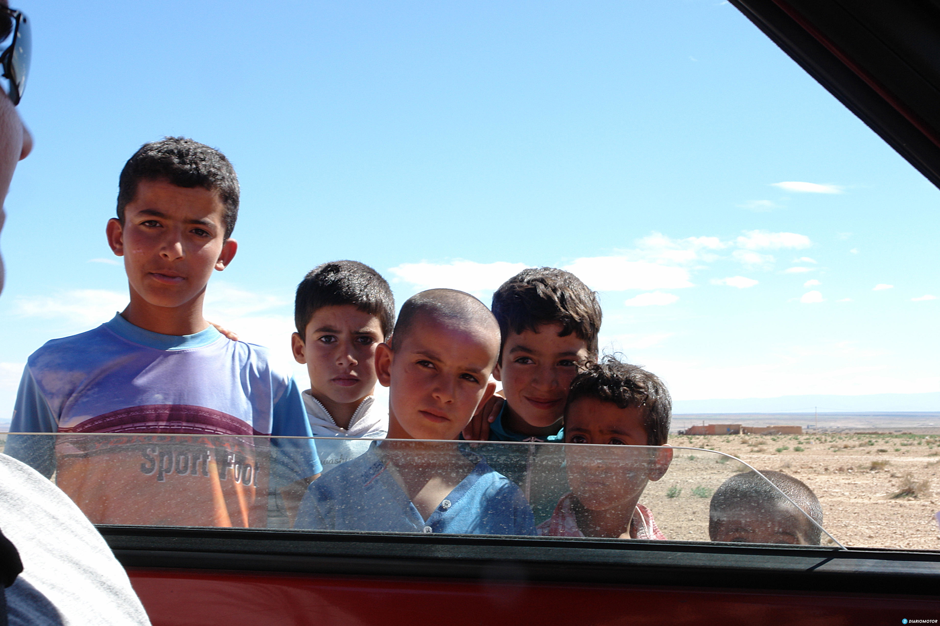 El paisaje va cambiando a medida que nos adentramos en el interior del país y el mar va quedando lejos, pero en este primer día nos sorprende más la idiosincrasia de Marruecos, así como su extrema pobreza. Cuando las aceras están desconchadas y sucias sabes que estás en un país pobre, pero cuando no hay aceras y los niños piden comida y zapatos, la cosa está bastante peor que mal. No todo Marruecos es así, de hecho hay zonas ricas, pero el interior desértico más próximo a Argelia es realmente miserable.