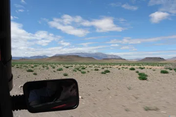 A la llegada a Tissaf, nos espera un campamento en medio de una llanura pedregosa con fondo de montañas nevadas. Increíble.