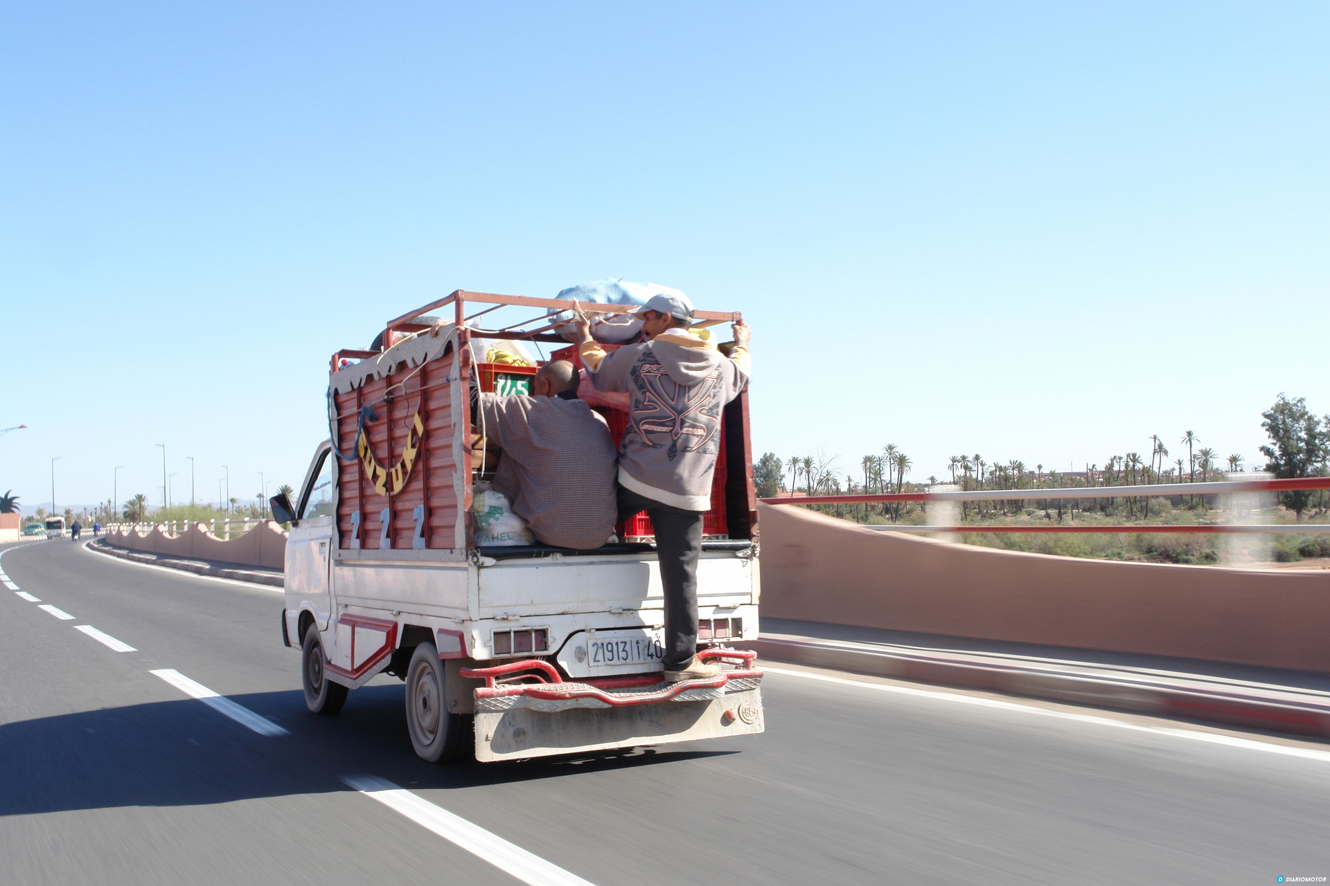 Se trata de un país rico en relación al continente africano, pero terriblemente pobre si lo llevamos a la escala europea. Los vehículos con los que compartimos carretera son de lo más variopinto y oscilan entre coches europeos más o menos modernos hasta clásicos franceses de la época post-colonial (Peugeot 504, Renault 18, Renault 4, Mercedes 300d en todas sus generaciones desde 1970…) También se llevan mucho los pick-up destartalados de marca Mitsubishi o Toyota, cargados hasta más allá de la altura del techo en un equilibrio imposible de objetos y amarres.