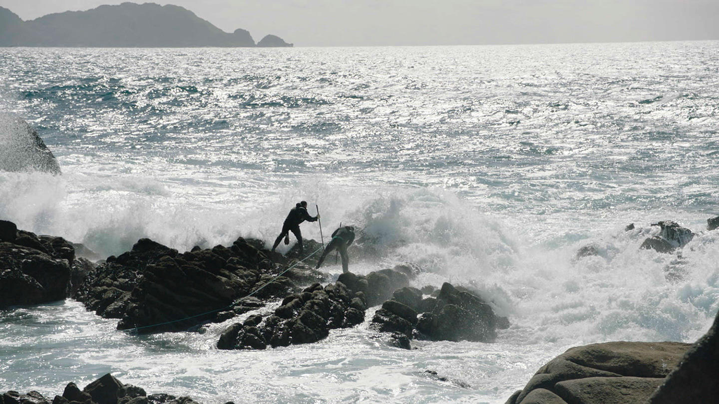 Aunque no siempre se trabaja en estas condiciones, en las que el mar está realmente alborotado, el hecho de que los percebes estén adheridos a las rocas bañadas por el mar, y el oleaje que azota en estos acantilados, hacen que el riesgo para el percebeiro que sale a faenar sea muy alto. Los percebeiros siempre están expuestos al peligro de que un golpe de mar acabe lanzándoles al agua y, en una situación como esta, regresar a las rocas y escapar indemne no es nada sencillo. De ahí que en esta profesión sea muy importante la condición física y ser capaz de predecir la llegada de una ola peligrosa. Como veremos en el vídeo a continuación, los percebeiros son conscientes de que un segundo, y la oportunidad de moverse un metro para protegerse, puede ser la diferencia entre esquivar un golpe de mar, o acabar en el agua.