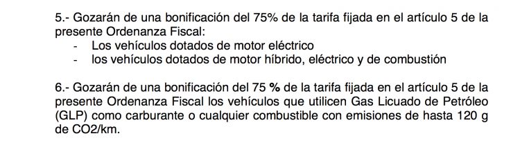 Estas bonificaciones suelen hacerse efectivas, por ejemplo, en las campañas del IVTM -Impuesto de Vehículos de Tracción Mecánica-, donde la inmensa mayoría de las ciudades españolas aplican bonificaciones de pueden llegar al 75%, o en las tarifas de aparcamiento regulado, donde los eléctricos, por ejemplo, están exentos de pagar.