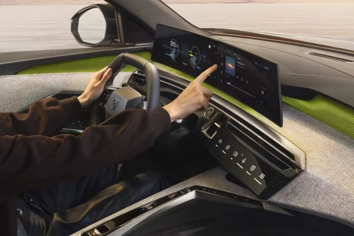 Por dentro, nos encontramos un interior muy parecido al e-3008, del cual ya hemos hablado en ocasiones anteriores y comparten plataforma STLA Medium. Esto implica que nos recibe la pantalla de 21 pulgadas que parece flotar sobre la iluminación LED, el polarizante Peugeot i-Cockpit que te mete dentro del coche en vez de ir subido sobre él y las funciones accesibles a través del i-Toggles en la consola central. Todo lo bueno del e-3008 lo encontramos aquí.