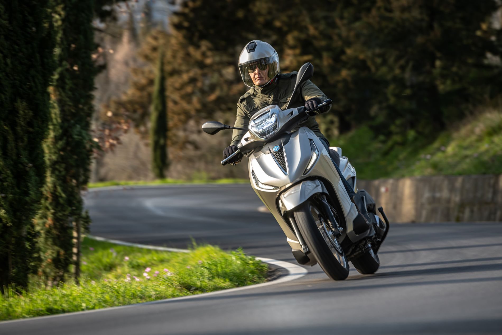 La motorización estrenada en este 2025 para la Piaggio Beverly de acceso es muy interesante por su equilibrio general, buen andar y bajos consumos. Estrenada también en el MP3, el bloque del Beverly de acceso cuenta con 310 centímetros cúbicos, refrigeración líquida, cuatro válvulas y desarrolla una potencia de 27,7 CV, una interesante cifra que te dará para moverte con soltura en ciudad y vías de circunvalación.