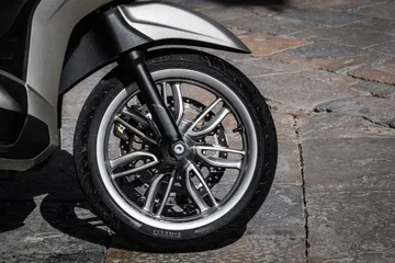 Una de las ventajas de la Piaggio Beverly 310 está en su completa dotación en cualquiera de los dos acabados. En seguridad siempre están equipadas con antibloqueo de frenos ABS de dos canales, discos en ambos ejes, sistema de control de tracción TCS desconectable y faros Full LED para garantizar la mejor visibilidad por la noche.