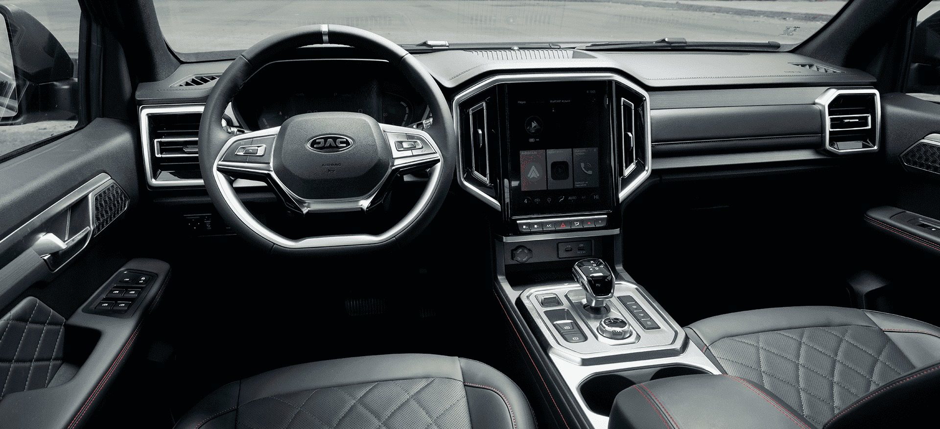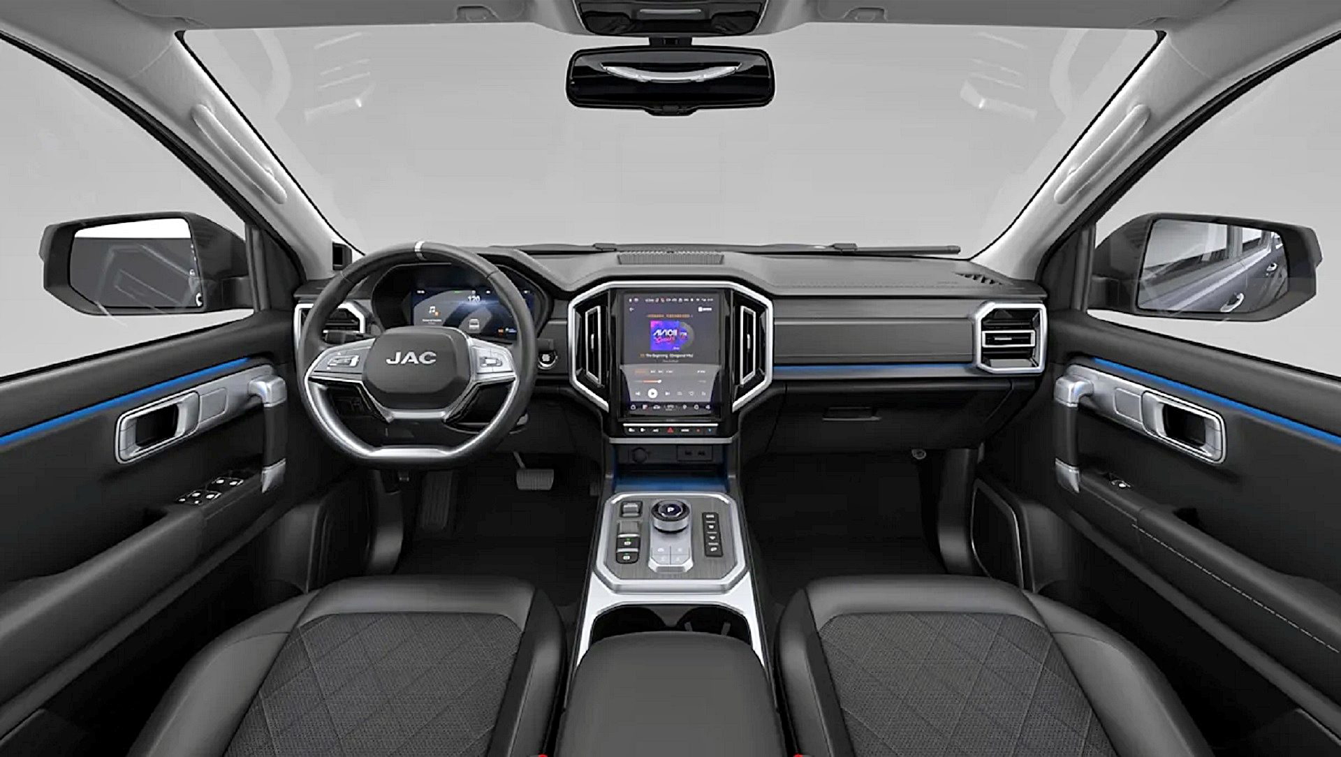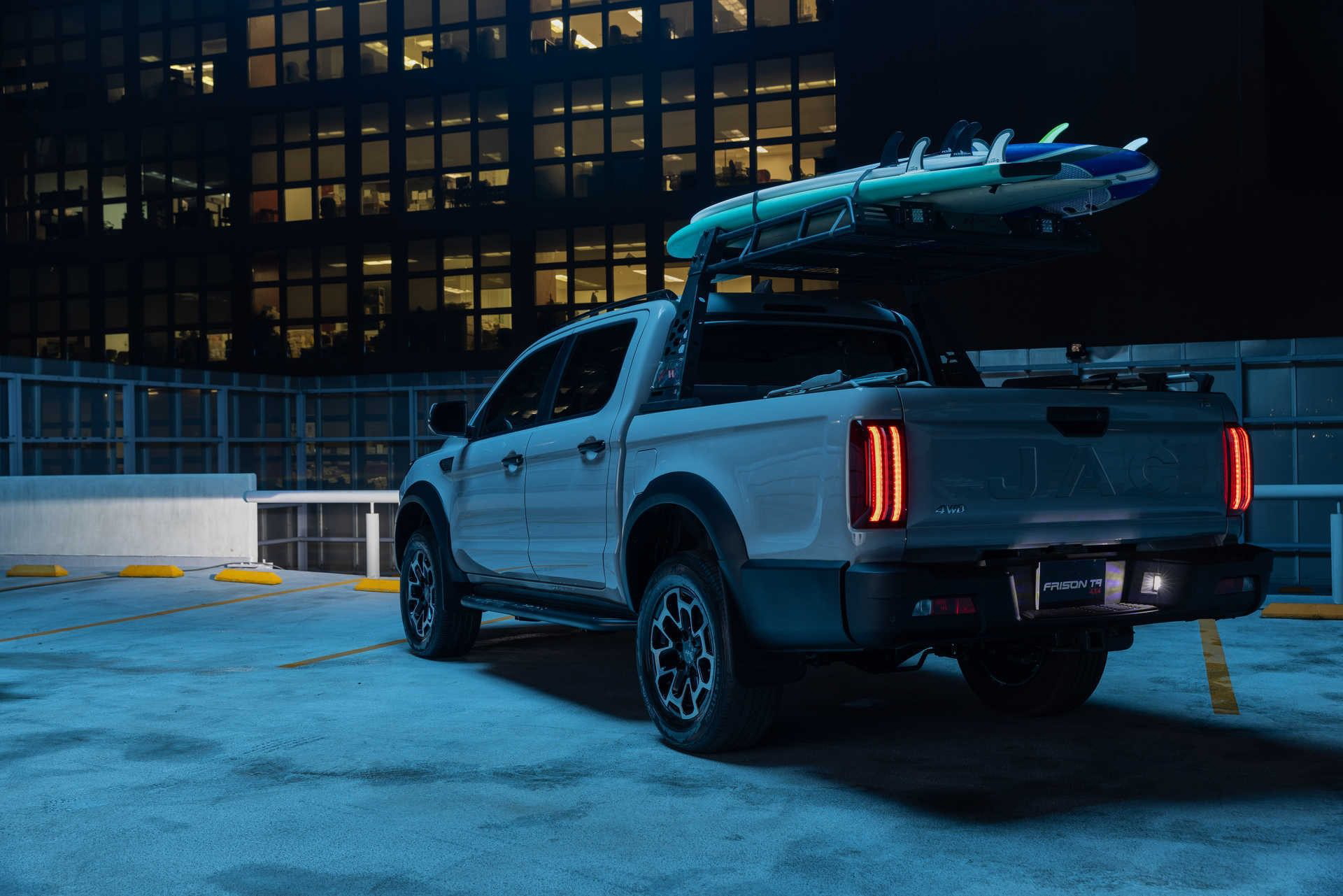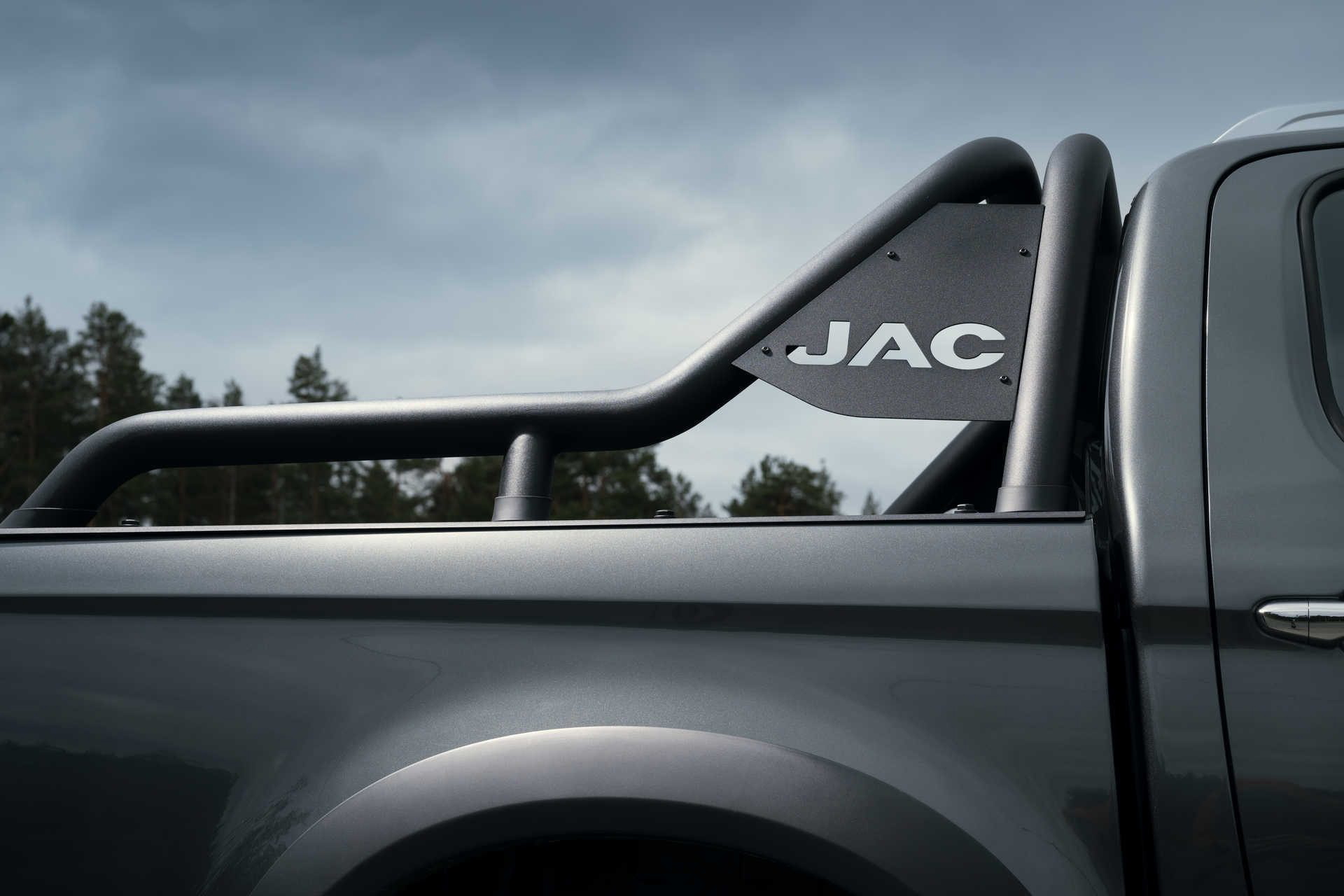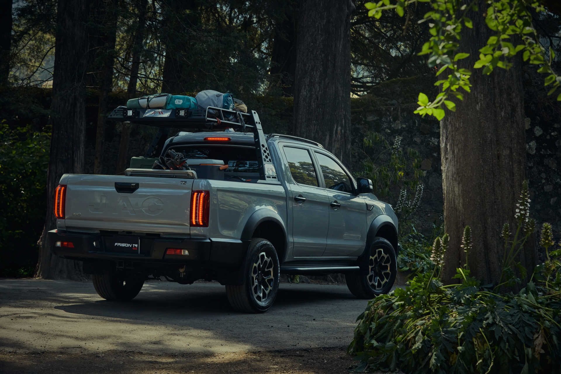 La batería de alta tensión tiene celdas LFP y es casi tan grande como la de un coche eléctrico pequeño. Tiene 31,2 kWh de capacidad y, según JAC, puede hacer «al menos» 100 km en modo eléctrico, sin gastar una gota de gasolina. Además, puede cargar herramientas u otros dispositivos eléctricos gracias a una toma de corriente ubicada en la caja.
