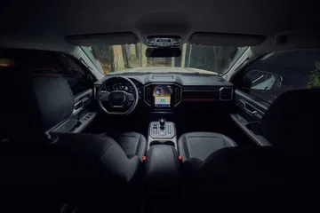 La T9 Hunter híbrida enchufable utiliza la misma plataforma que las versiones térmicas, pero es mucho más potente. Tiene la friolera de 524 CV de potencia y 1000 Nm de par motor gracias a tres motores. El motor térmico es un gasolina turboalimentado de 2.0 litros, que se combina con dos motores eléctricos (uno en cada eje).