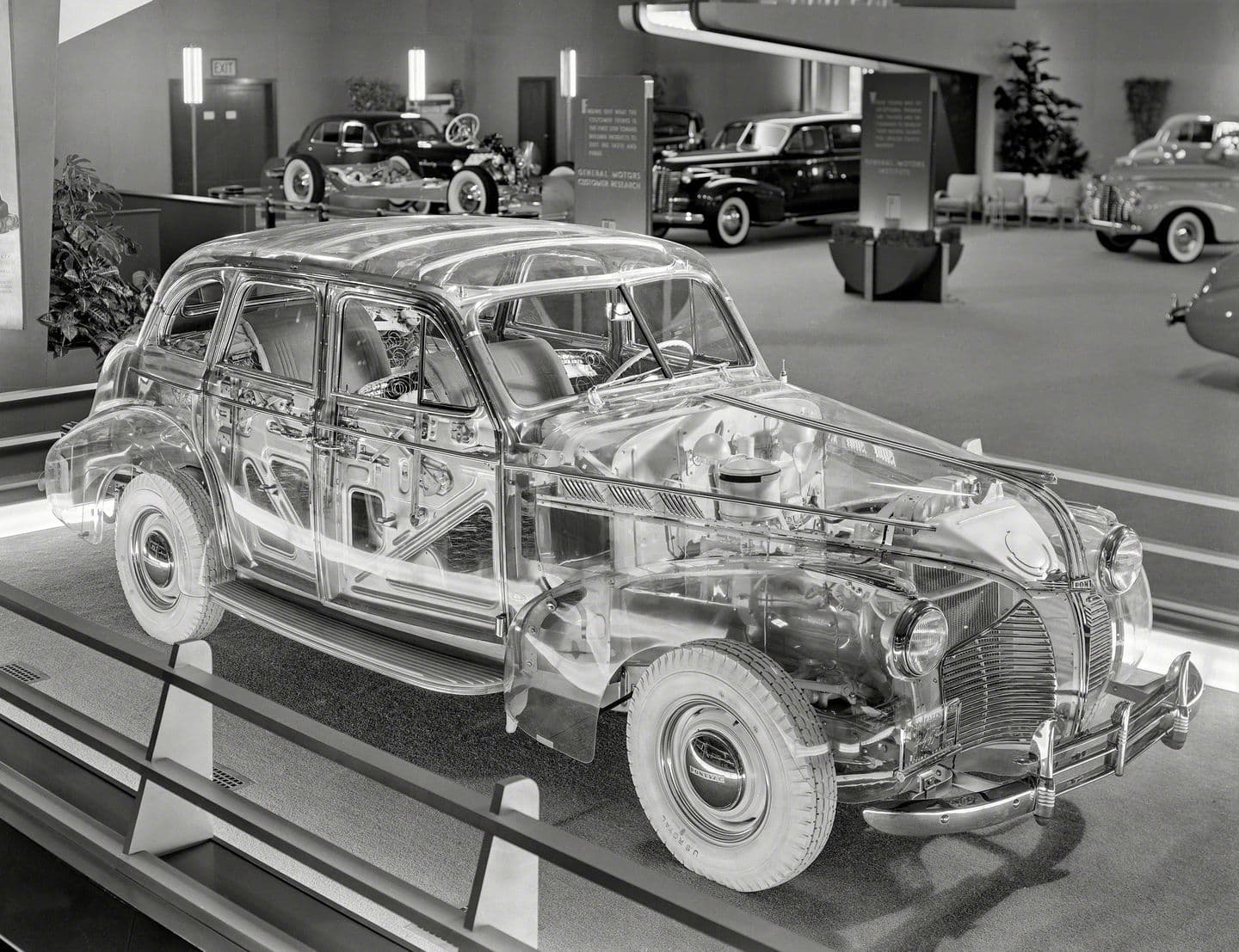 A mediados del pasado siglo, las World Fair estadounidenses – un equivalente a las Expo europeas – mostraron al mundo la idílica visión del futuro de las empresas e instituciones más punteras. General Motors solía participar con una exposición llamada Futurama, en la que presentaba prototipos rompedores, de diseño futurista y alocadas soluciones. Pura imagen de marca. En 1939, en la New York’s World Fair presentaron el «coche fantasma», un sensacional Pontiac completamente funcional con una carrocería transparente.