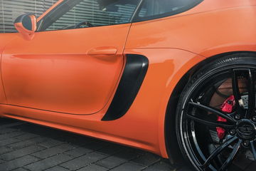 El catálogo de accesorios de TechArt para el Porsche 718 Cayman surte al coupé de motor central de Porsche de multitud de añadidos de fibra de carbono, con unas nuevas branquias laterales, un nuevo splitter frontal, unas “pestañas” para las tomas de aire delanteras, una nueva toma de aire frontal bajo el portón del maletero delantero, un nuevo difusor posterior, unas atractivas branquias laterales, unas nuevas molduras para los retrovisores…