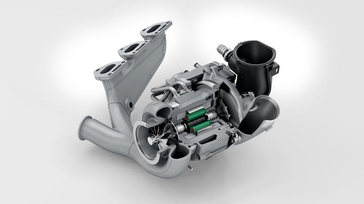 A su vez, este motor eléctrico actúa como generador y desarrolla hasta 15 CV de energía eléctrica, energía que se obtiene directamente del flujo de gases de escape. Como curiosidad, el turbo no tiene válvula de descarga, lo que permite el uso de un solo turbo en lugar de dos como ocurría antes y una respuesta más rápida e inmediata. Pero la cosa no termina ahí, porque ese no es el motor eléctrico del sistema híbrido.