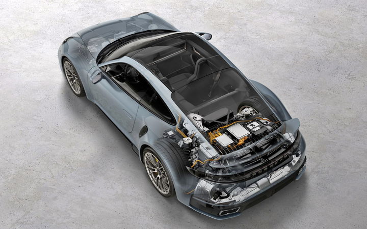 En un coche deportivo, añadir una batería de considerablemente grande y uno o dos motores eléctricos, supone un desafío a nivel técnico, pero también un compromiso por una cuestión de masa y dinámica de conducción. En el 911, el problema es todavía mayor: su configuración todo atrás dificulta las cosas todavía más.