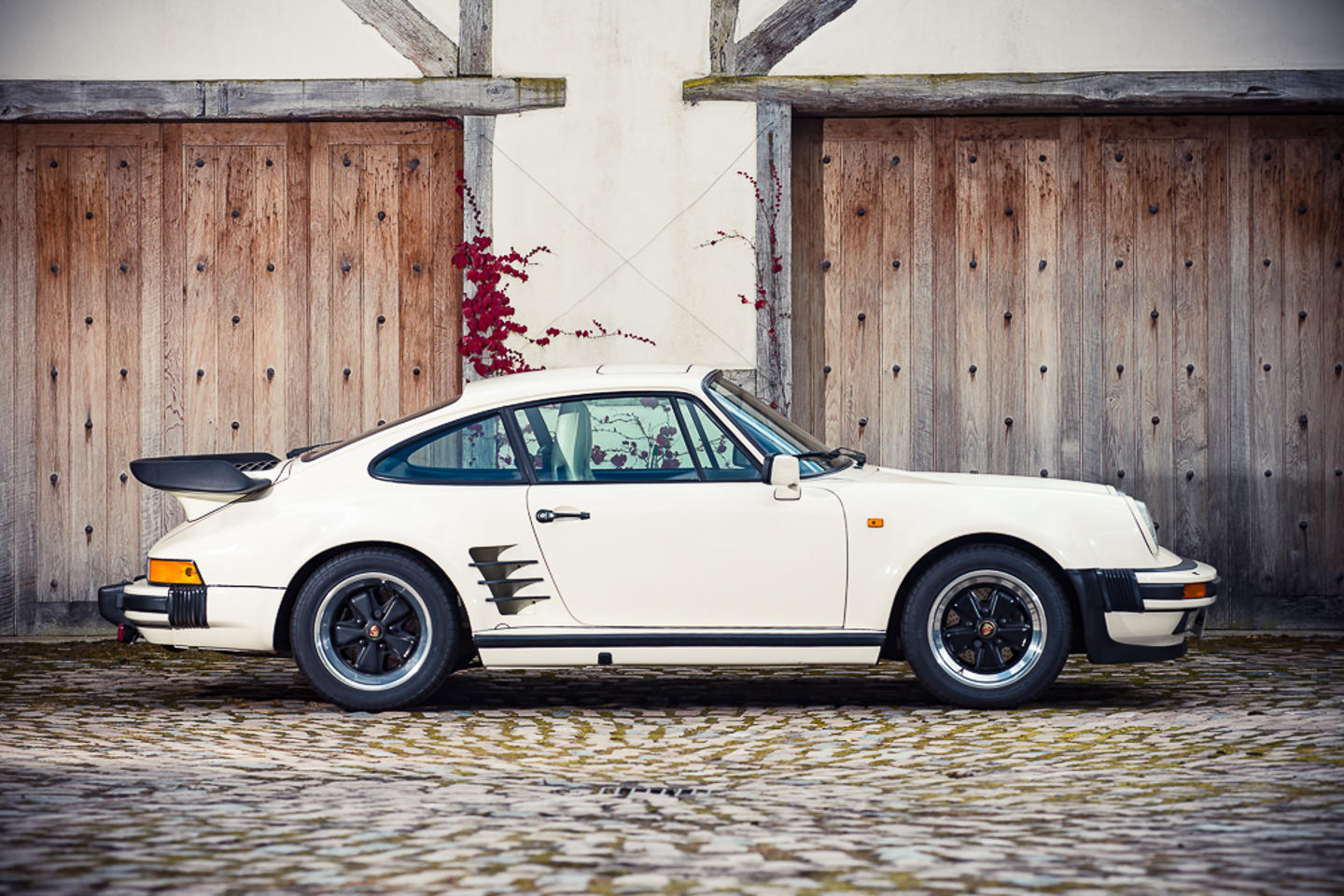 Este Porsche 911 (930) es un Turbo de 1985, con el motor bóxer de 6 cilindros y 3.3 litros de cubicaje que, recordemos, desarrollaba una potencia de 300 caballos. Su enorme alerón, esas branquias en los ensanchados pasos de rueda traseros… lo delatan y dan forma a una idílica estampa capaz de enamorar al primer vistazo a todo petrolhead.