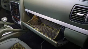La base fue un Cayenne GTS de 2009 con cambio manual y alrededor de 80.500 kilómetros en el odómetro. Y ahí empezó la transformación. La carrocería está pintada en Blackolive, un color Paint to Sample. La parte inferior de la carrocería y las llantas están terminadas en negro mate para acentuar el carácter todoterreno del SUV, al que también se suman los neumáticos todoterreno de tacos. Y se le instaló un gancho de remolque para llevar la típica caravana enorme estadounidense.