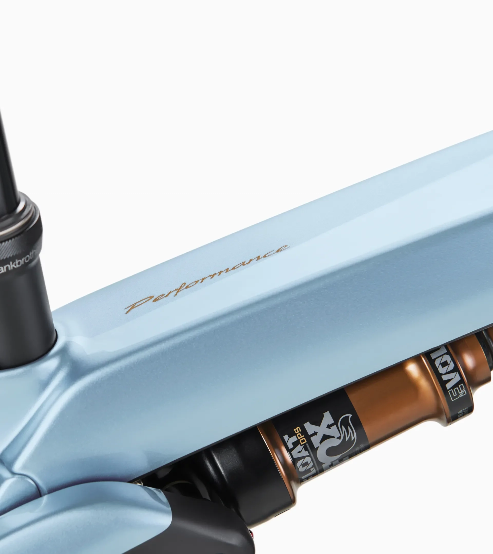 En el caso de la Porsche eBike Cross Performance, además de las mismas mejoras en la suspensión que la Cross, que en esta caso es una FOX Factory Performance, se han realizado mejoras en la geometría del cuadro en forma de refuerzos, para con ello propiciar una mejor absorción de impactos en rutas exigentes.