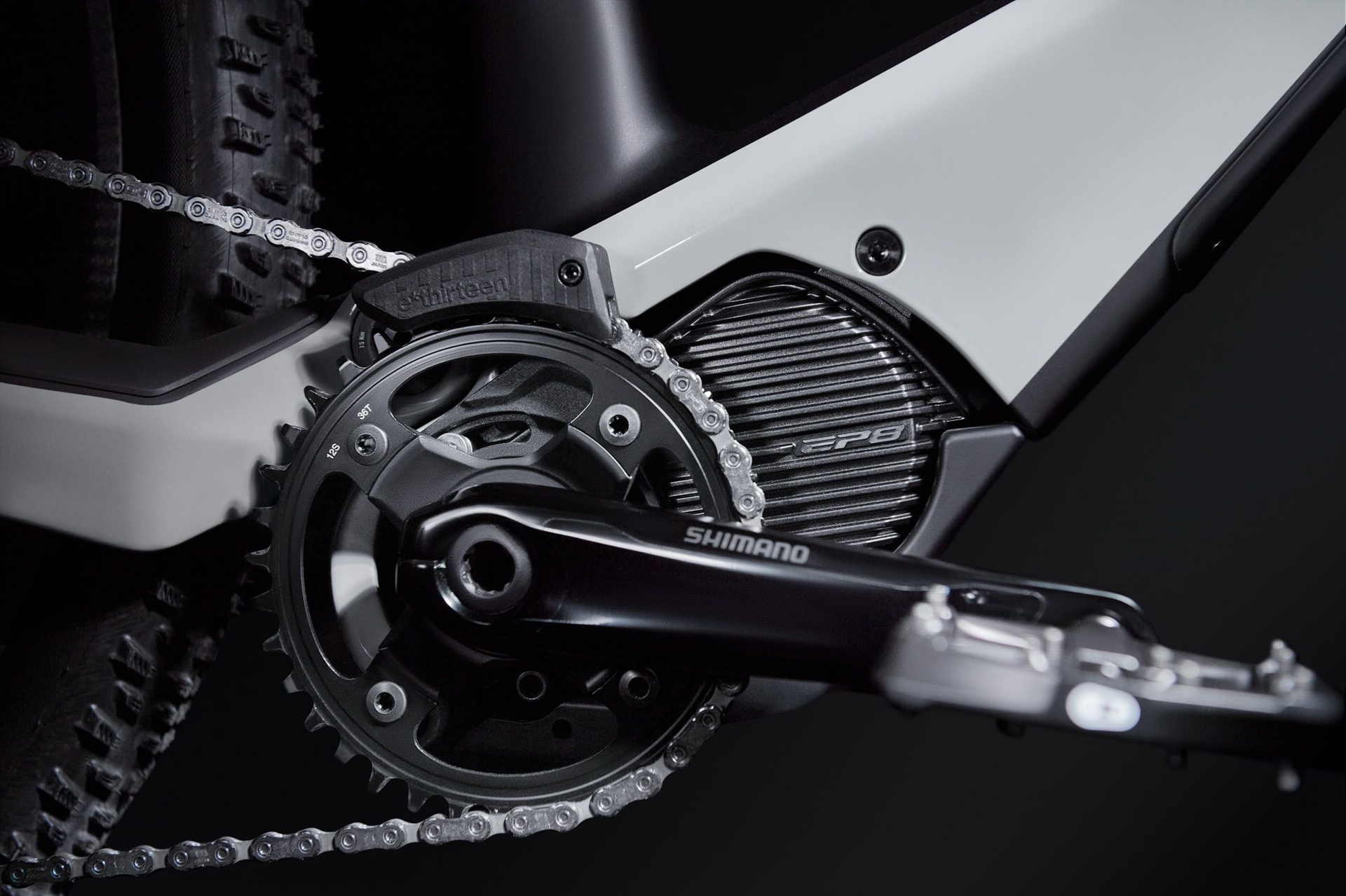 El principal salto está, sin duda, en la adopción del motor central Shimano EP801 en sustitución del EP8, que según la propia marca, gestiona la potencia de manera más eficiente y brinda una respuesta más inmediata a las necesidades del ciclista. El par motor, por contra, sigue siendo de 85 Nm (una cifra contundente), mientras que la potencia nominal se mantiene en 250 W.