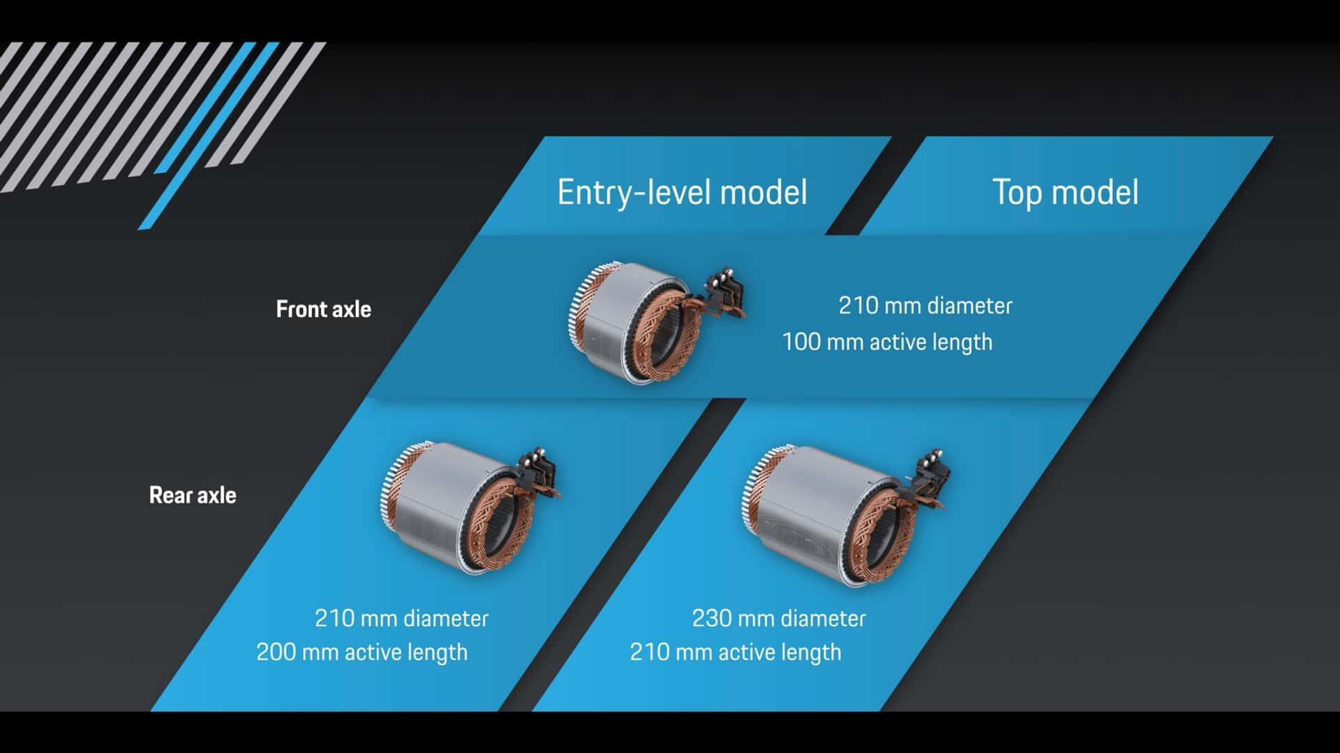 En términos de rendimiento, por el momento sólo se ha confirmado que la versión más prestacional, el Macan Turbo, desarrollará 612 CV de potencia y 1.000 Nm de par máximo. Esto será posible gracias al uso de un esquema de dos motores eléctricos, uno en cada eje, combinándose con un diferencial autoblocante en el eje trasero y un sistema de control vectorial del par.