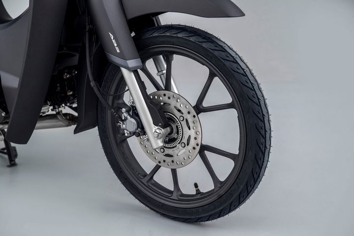 En el apartado de parte ciclo, la Super Cub 125 recurre a soluciones simples pero eficaces, pensadas para ofrecer una conducción cómoda y predecible. Monta una horquilla telescópica delantera con 90 mm de recorrido y doble amortiguador trasero con 84 mm, un esquema que prioriza la comodidad sobre la rigidez. Las llantas de 17 pulgadas garantizan una excelente absorción de baches, algo muy apreciable en el uso urbano diario. Es una moto cómoda y tranquila para ciudad y sus alrededores.