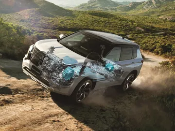 - La tracción 4×4 es de tipo inteligente, sin conexión mecánica entre ejes, aunque haciendo del Outlander uno de los SUV híbridos más capaces en todoterreno.