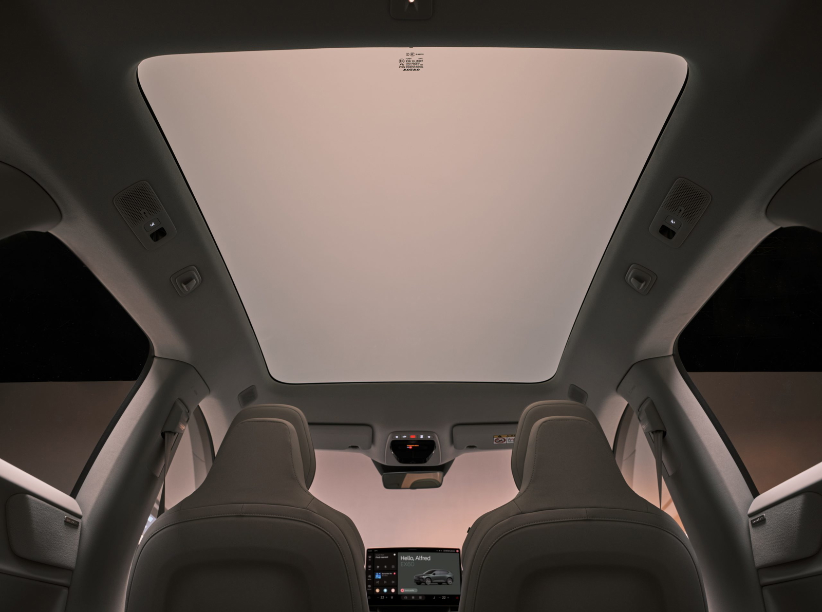 El interior del Volvo EX60 es minimalista, pero es acogedor y está construido con materiales de mucha calidad. Es como un pequeño salón escandinavo con ruedas. Aun así es un habitáculo muy tecnológico, con una instrumentación digital de 11,4″ y una pantalla central gigantesca, de 15″. Esta pantalla emplea Android Automotive como sistema operativo, es extremadamente fluida y tiene un funcionamiento muy intuitivo. Incluso en su versión de acceso tiene un techo panorámico fijo y un equipo de sonido premium Bose de 21 altavoces.