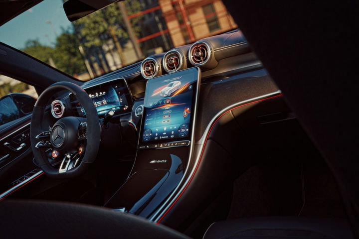 Como complemento, el paquete AMG DYNAMIC PLUS incorpora soportes activos del motor con ajuste variable según la situación de conducción. Este sistema optimiza la conexión entre el propulsor y la carrocería, endureciéndose en conducción deportiva y suavizándose en uso cotidiano.
