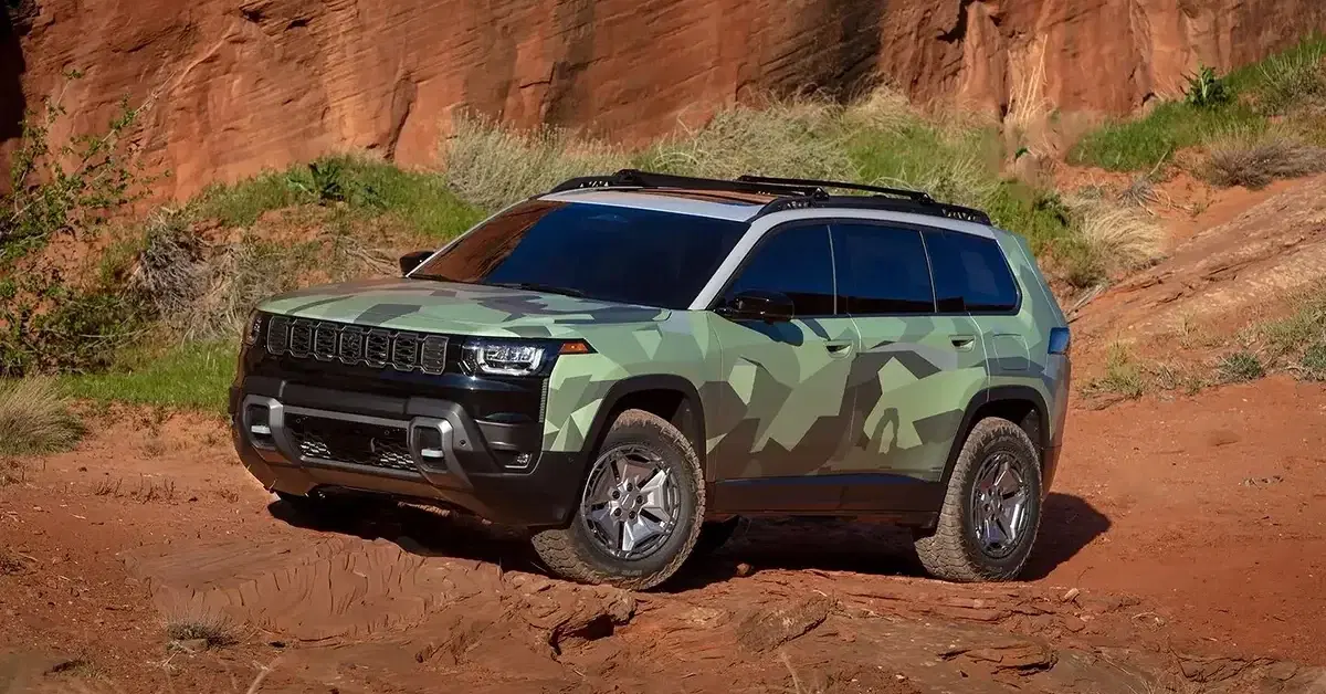 Sin embargo aún había margen de mejora en esta receta, todos lo sabíamos y por eso en Moab Jeep ha presentado el Cherokee Upland como preludio de lo que veremos en el Cherokee Trailhawk 2027, una variante revisada y mejorada para salir del asfalto que ya en este prototipo incluye una suspensión cuya altura ha sido incrementada en 5,1 cm, nuevas protecciones en los bajos, un nuevo kit de carrocería, baca sobre el techo y nuevas llantas de 18” calzadas con neumáticos todoterreno Falken Wildpeak en tamaño de 32 pulgadas.