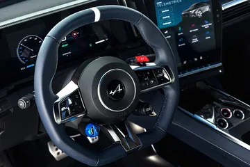A diferencia de lo que ocurre con el diseño exterior, dentro sí se nota claramente el vínculo con Renault, lo que le resta algo de exclusividad, sin embargo Alpine sí que hace uso de un precioso volante deportivo de diseño específico, una consola central que homenajea el A110 usando botones para el sentido de la marcha y unos espectaculares asientos deportivos que, sin llegar a ser baquets, recogen muy bien el cuerpo, están tapizados en piel Nappa e icluyen calefacción, masaje y ajustes eléctricos.