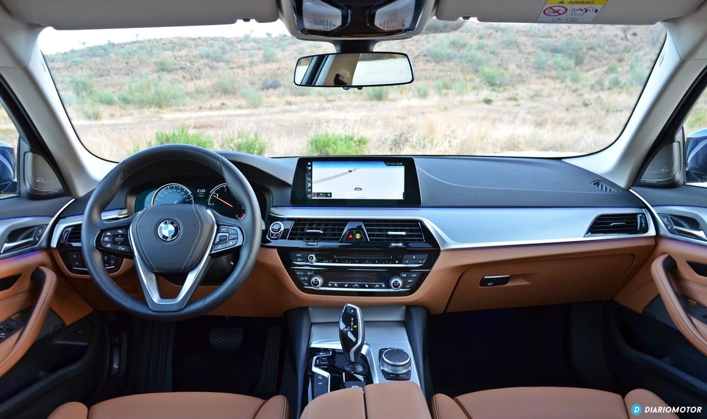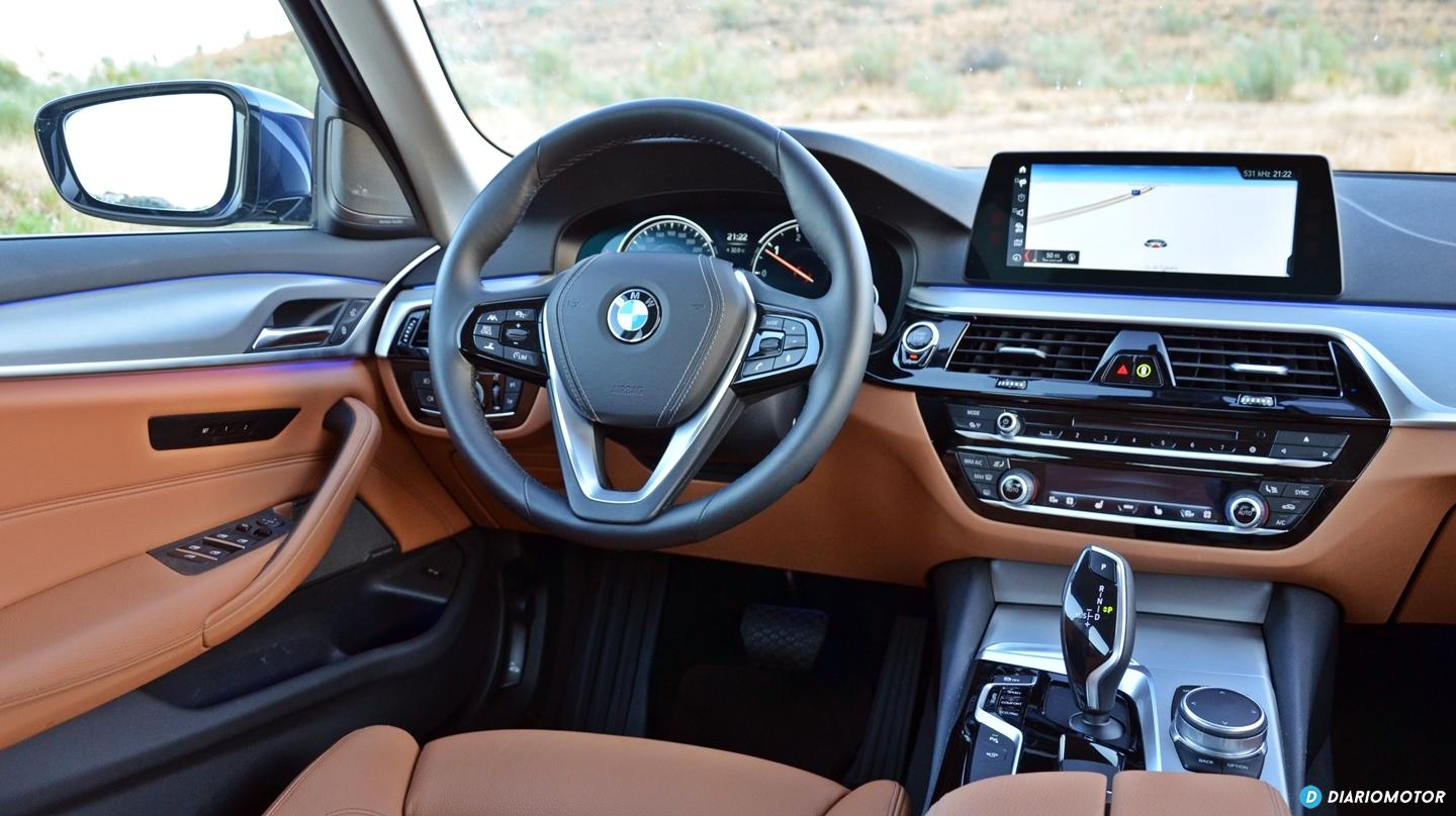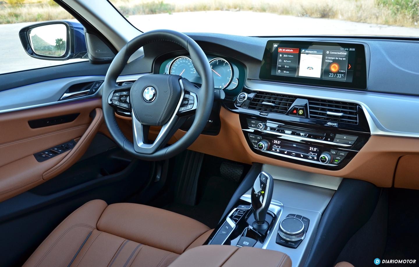 Pero es cuando nos adentramos en sus posibilidades de equipamiento cuando el BMW Serie 5 saca a relucir una de sus mejores apuestas para esta generación. BMW se ha volcado con todo cuanto supone la conectividad, el infoentretenimiento y las asistencias al conductor, por este motivo el sistema BMW Connected Drive es una de las interfaces de referencia. No os vamos a engañar, las posibilidades de equipamiento que ofrece la Serie 5 son casi infinitas, pero ello supone desembolsar una importante cantidad de dinero si quieres disfrutar de lo último, y cuando decimos lo último es realmente lo último. BMW pone a disposición de sus clientes un sistema de infoentretenimiento capaz de reconocer gestos para funciones de volumen, selección de pista, colgar/descolgar, etc. ofrece compatibilidad con Apple CarPlay, sistema de asistencia remota y llamada de emergencia, servicios conectados como meteorología y tráfico, aplicaciones dedicadas, punto de acceso WiFi y hasta un verdadero asistente personal para todo cuanto desees. Este sistema se controla a través de un mando giratorio en la consola de funcionamiento impecable y emplea una pantalla fija en el salpicadero con 10,25 pulgadas con gran calidad en resolución y gráficos. Sin lugar a dudas BMW cuenta con una de las interfaces más recomendables del mercado, no es perfecta, pero sí que está por encima de sus rivales en ergonomía, servicios y calidad.