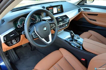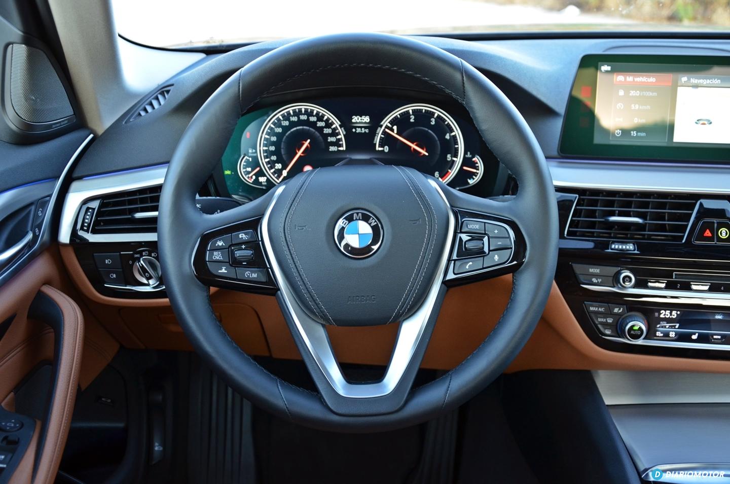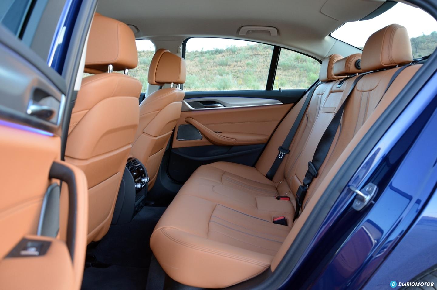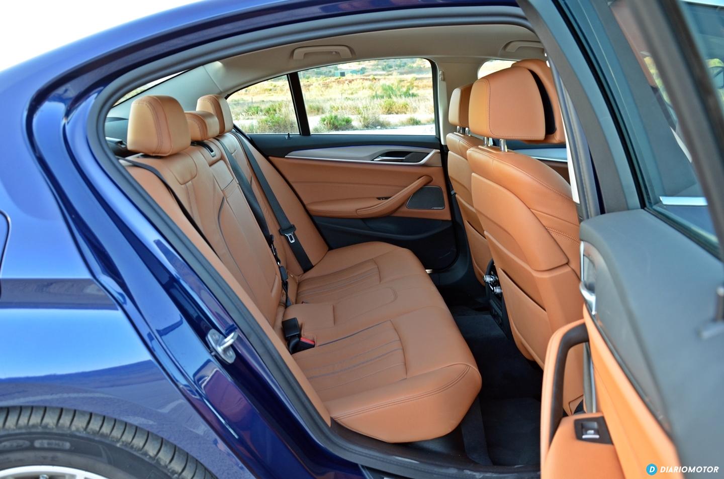 Pero es cuando nos adentramos en sus posibilidades de equipamiento cuando el BMW Serie 5 saca a relucir una de sus mejores apuestas para esta generación. BMW se ha volcado con todo cuanto supone la conectividad, el infoentretenimiento y las asistencias al conductor, por este motivo el sistema BMW Connected Drive es una de las interfaces de referencia. No os vamos a engañar, las posibilidades de equipamiento que ofrece la Serie 5 son casi infinitas, pero ello supone desembolsar una importante cantidad de dinero si quieres disfrutar de lo último, y cuando decimos lo último es realmente lo último. BMW pone a disposición de sus clientes un sistema de infoentretenimiento capaz de reconocer gestos para funciones de volumen, selección de pista, colgar/descolgar, etc. ofrece compatibilidad con Apple CarPlay, sistema de asistencia remota y llamada de emergencia, servicios conectados como meteorología y tráfico, aplicaciones dedicadas, punto de acceso WiFi y hasta un verdadero asistente personal para todo cuanto desees. Este sistema se controla a través de un mando giratorio en la consola de funcionamiento impecable y emplea una pantalla fija en el salpicadero con 10,25 pulgadas con gran calidad en resolución y gráficos. Sin lugar a dudas BMW cuenta con una de las interfaces más recomendables del mercado, no es perfecta, pero sí que está por encima de sus rivales en ergonomía, servicios y calidad.