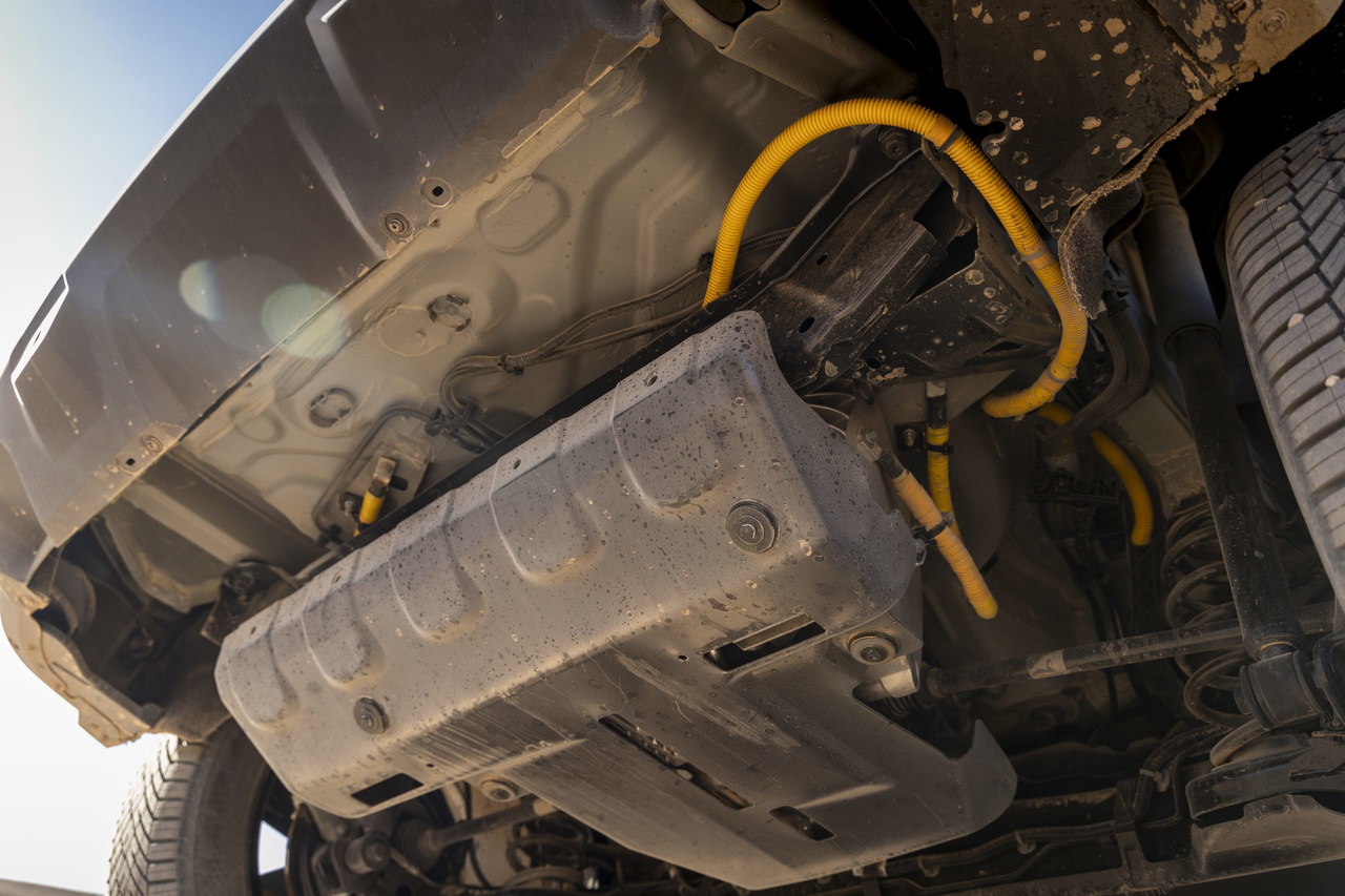 Se emplea un motor eléctrico de «solo» 17 CV situado en el eje trasero, independiente al resto de la mecánica, pero que puede llegar a picos de 31 CV. La peculiaridad es que este motor eléctrico no necesita ser muy potente, ya que cuenta con dos velocidades, una de ellas muy corta y desmultiplicada hasta 22 a 1. A todos los efectos, hablamos de una reductora eléctrica, capaz de enviar 1.800 Nm a las ruedas. El último ingrediente es una batería de 0,84 kWh, casi tan grande como la de un híbrido convencional.