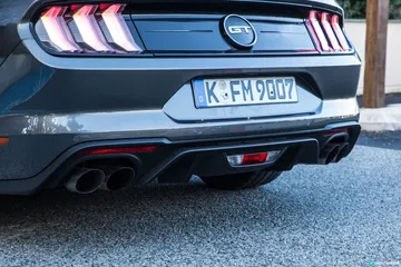 Todos los capó de los Ford Mustang tienen ahora dos salidas de aireación. De ellas emanan unos nervios que mueren en la zaga del coche. En la zaga también hay más personalidad: el difusor ha sido rediseñado y en los GT, cuatro colas de escape asoman amenazadoras por su parte inferior. Charlando con Carl Windmann – jefe de proyecto del Mustang – he averiguado que el rediseño del frontal ha sido polémico: la altura del capó es 20 mm inferior a la de su predecesor, jugando al limite de las normativas europeas de protección al peatón en caso de atropello.