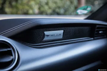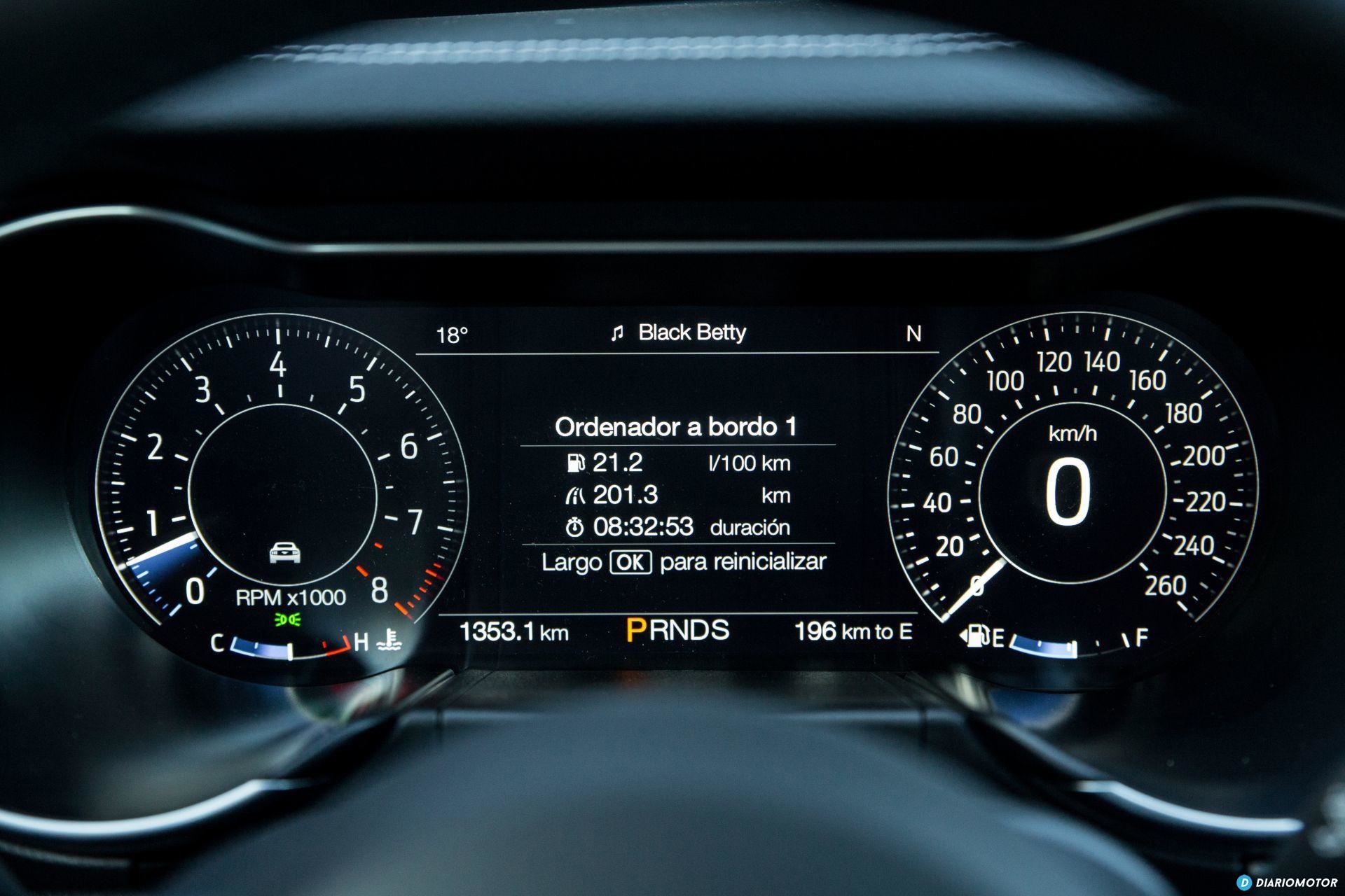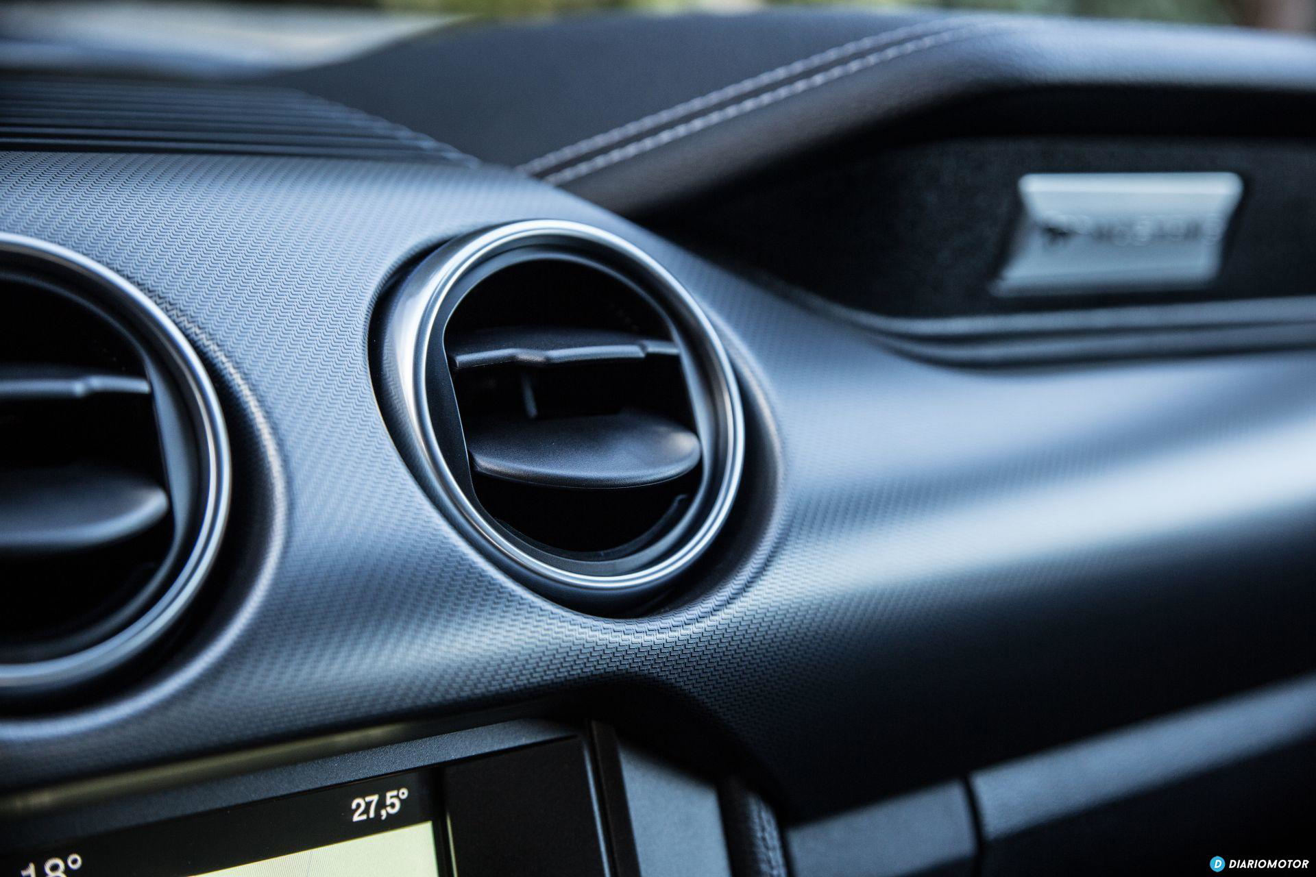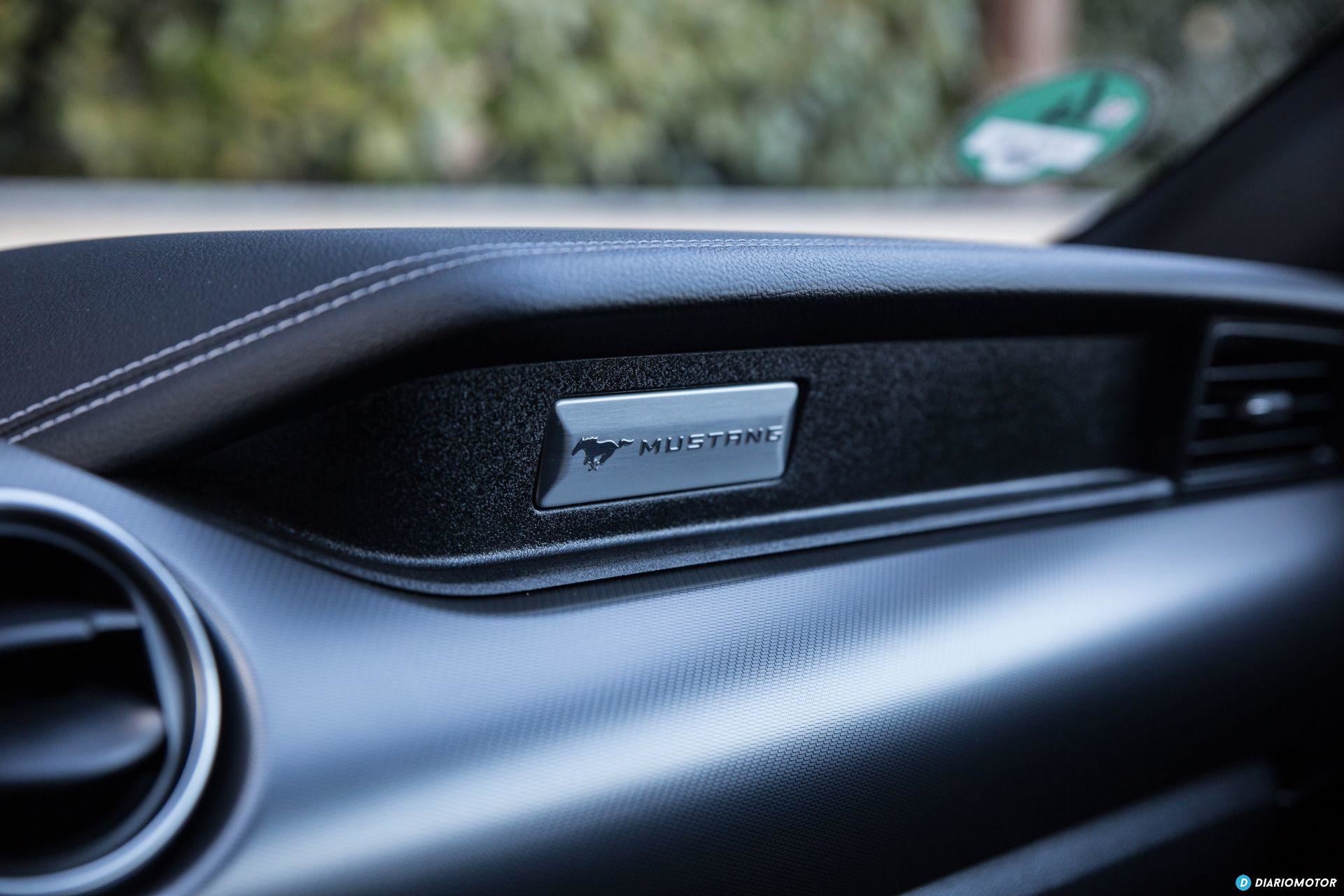 El Ford Mustang nunca destacó por sus acabados o terminaciones. En este lavado de cara se ha tratado de imprimir un aspecto más premium al habitáculo. Por ejemplo, tanto el salpicadero como consola central están ahora recubiertos de cuero artificial, con pespunteado en color. La moldura que rodea la instrumentación pasa a ser de aluminio, en vez de plástico. ¿Sigue el Ford Mustang teniendo ajustes mejorables y muchos plásticos duros? Sí, aunque ha ganado empaque, sigue siendo inferior a su competencia. Pero también sigue siendo espectacularmente inferior en precio de compra.