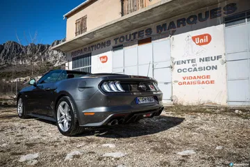 Como es lógico, su tarado varía en función del modo de conducción en que estemos circulando. Nuestras primeras impresiones de esta suspensión son muy buenas. En el modo Normal es una suspensión cómoda, capaz de filtrar perfectamente las irregularidad del firme. En modos más deportivos, se endurece de forma notable, permitiendo un paso por curva que parece difícil de creer en un descapotable de 450 CV y más de 1.800 kilos de peso. Estamos deseando probar su paso por curva en circuito, donde desde Ford afirman es especialmente eficaz.