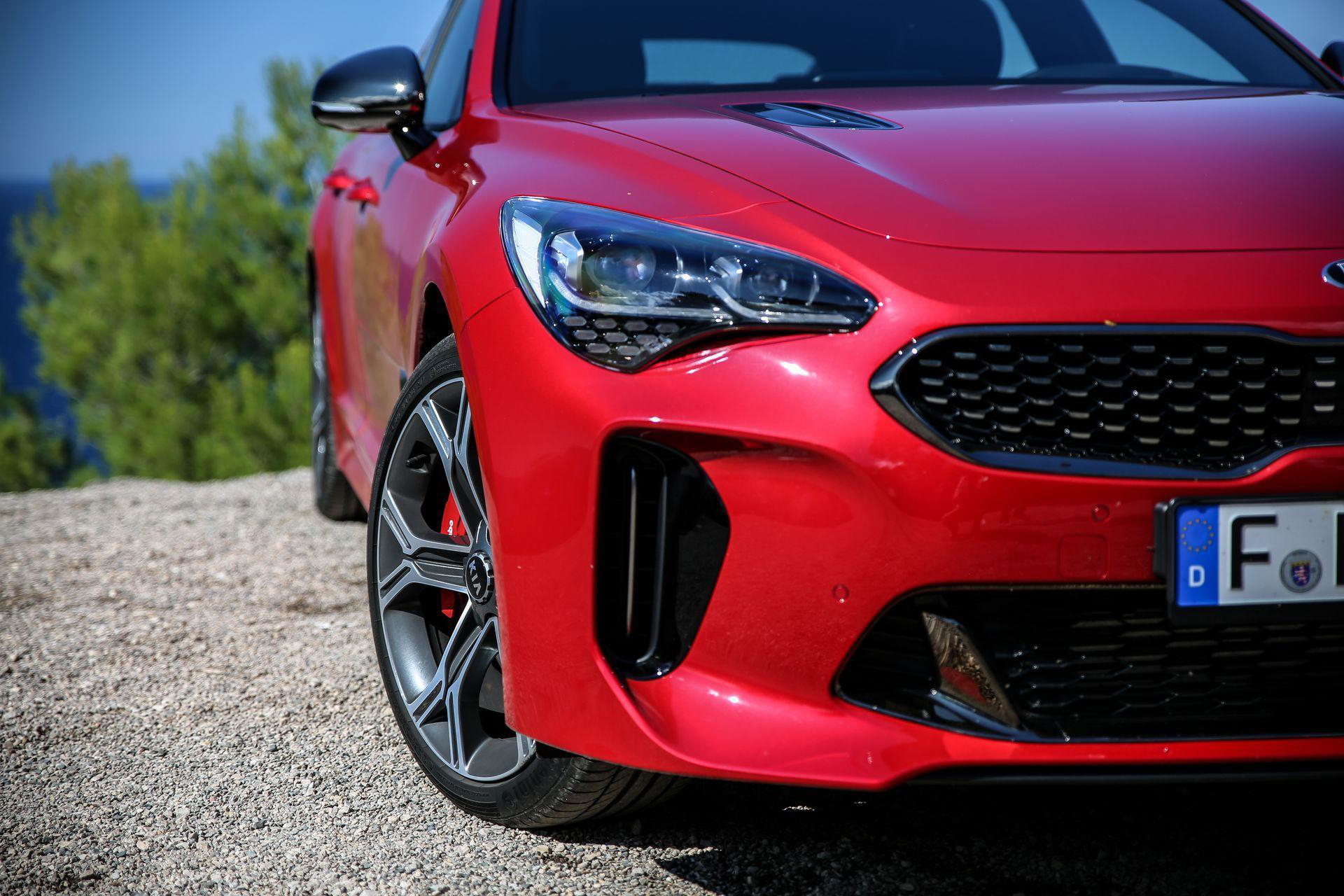 Los asistentes a la presentación alabamos al unísono los cuatro tubos de escape que asoman por su zaga – completamente funcionales, nada de salidas falsas – y aunque la «extensión» de las ópticas traseras a la línea de cintura lateral no fue plato de gusto para todo el mundo, hemos de reconocer que es un detalle original. Por supuesto, las versiones GT son las más impresionantes, y más si sabemos que bajo su capó laten 370 CV. No obstante, incluso las versiones de acceso a la gama tienen un porte agresivo, muy diferente al habitual raciocinio y mesura a los que nos tienen acostumbrados en KIA.