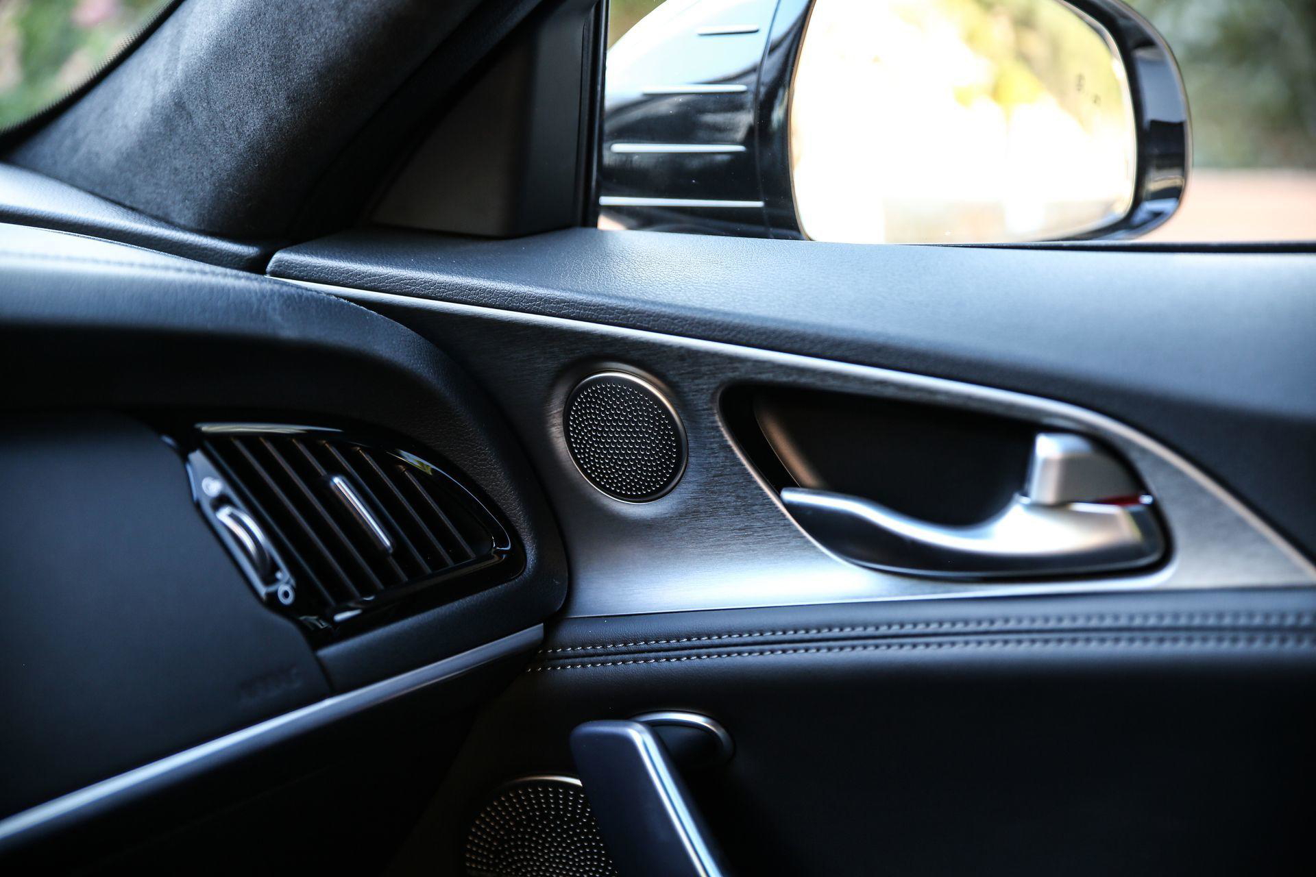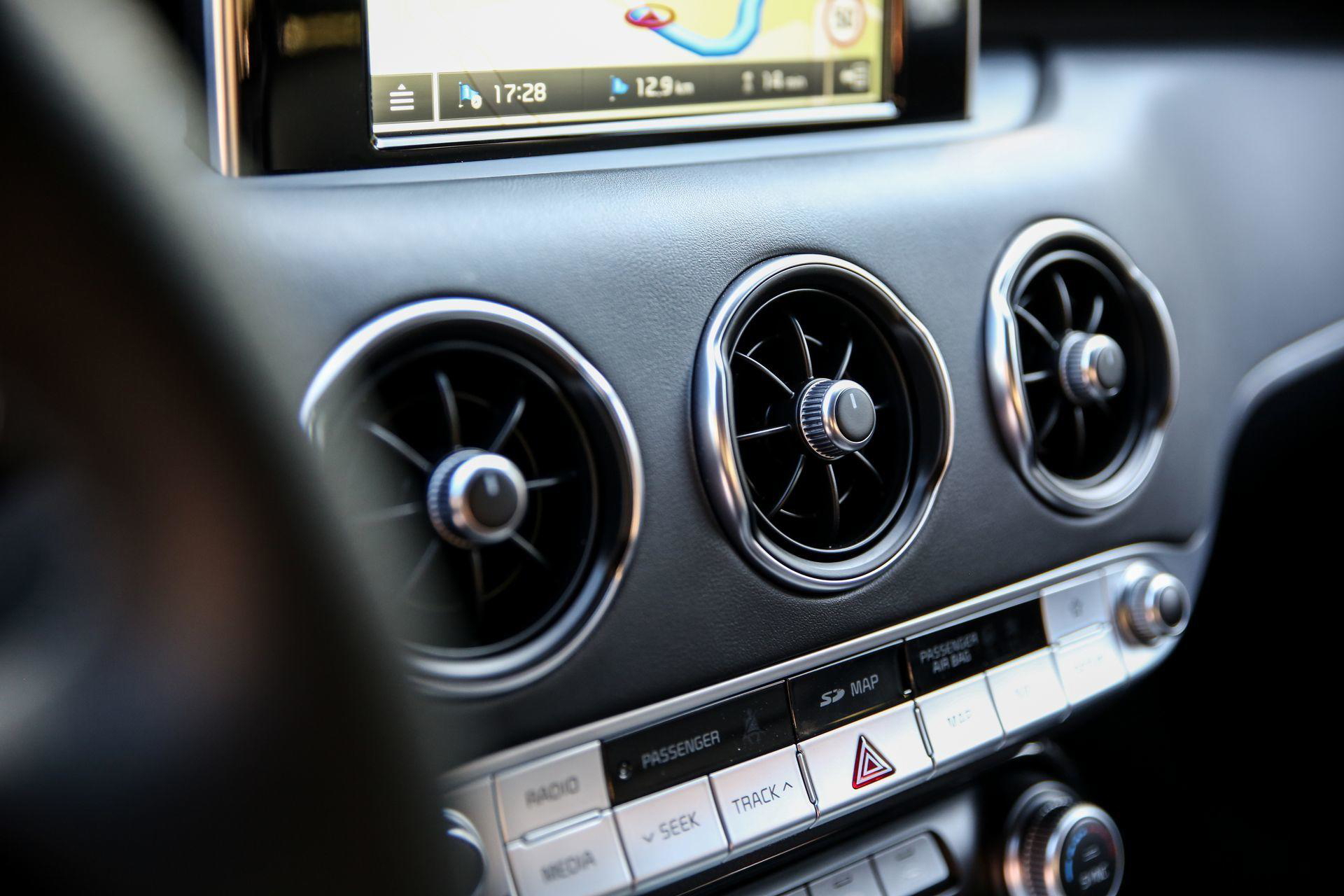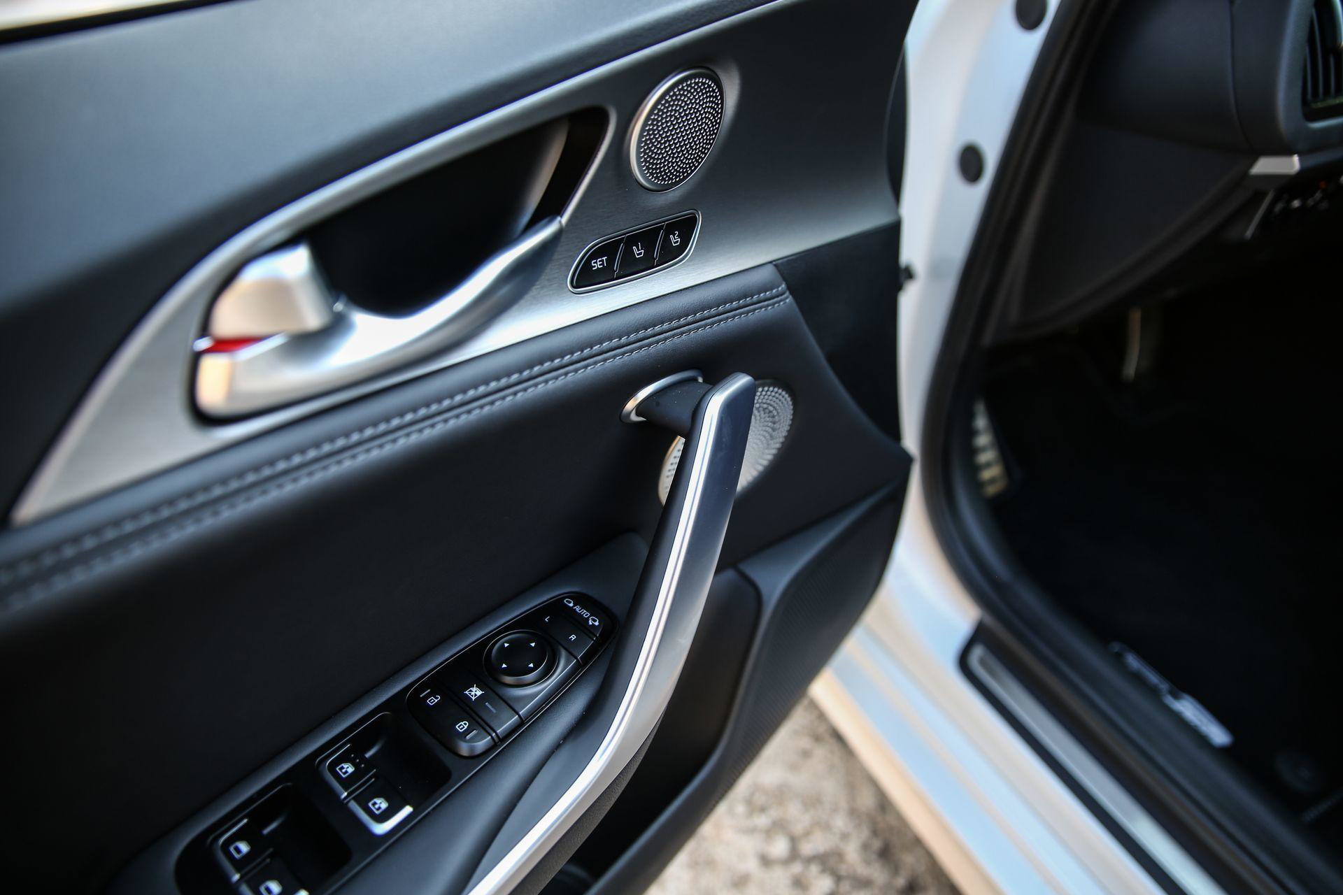 Accedemos al habitáculo, y vemos que realmente en KIA han ido a por todas. El equipo de sonido es Harman Kardon, los asientos deportivos de cuero son perforados, calefactados y ventilados, las puertas y consola central están recubiertas de aluminio, y todos los mandos tienen un ajuste francamente bueno. Apenas hay plásticos duros, con solo la puerta de la guantera y la base de la pantalla del sistema de infotainment como puntos mejorables. La calidad percibida del coche es muy alta, claramente superior a la de un Mercedes Clase C, pero sin llegar a los casi perfectos acabados de un Audi A5 Sportback.