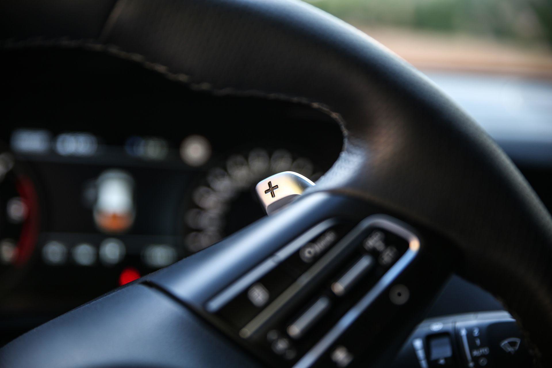 Su caja de cambios automática no posee un modo secuencial de verdad. Podemos cambiar de marcha mediante levas, pero el coche no mantendrá la marcha cuando llega al corte de inyección.