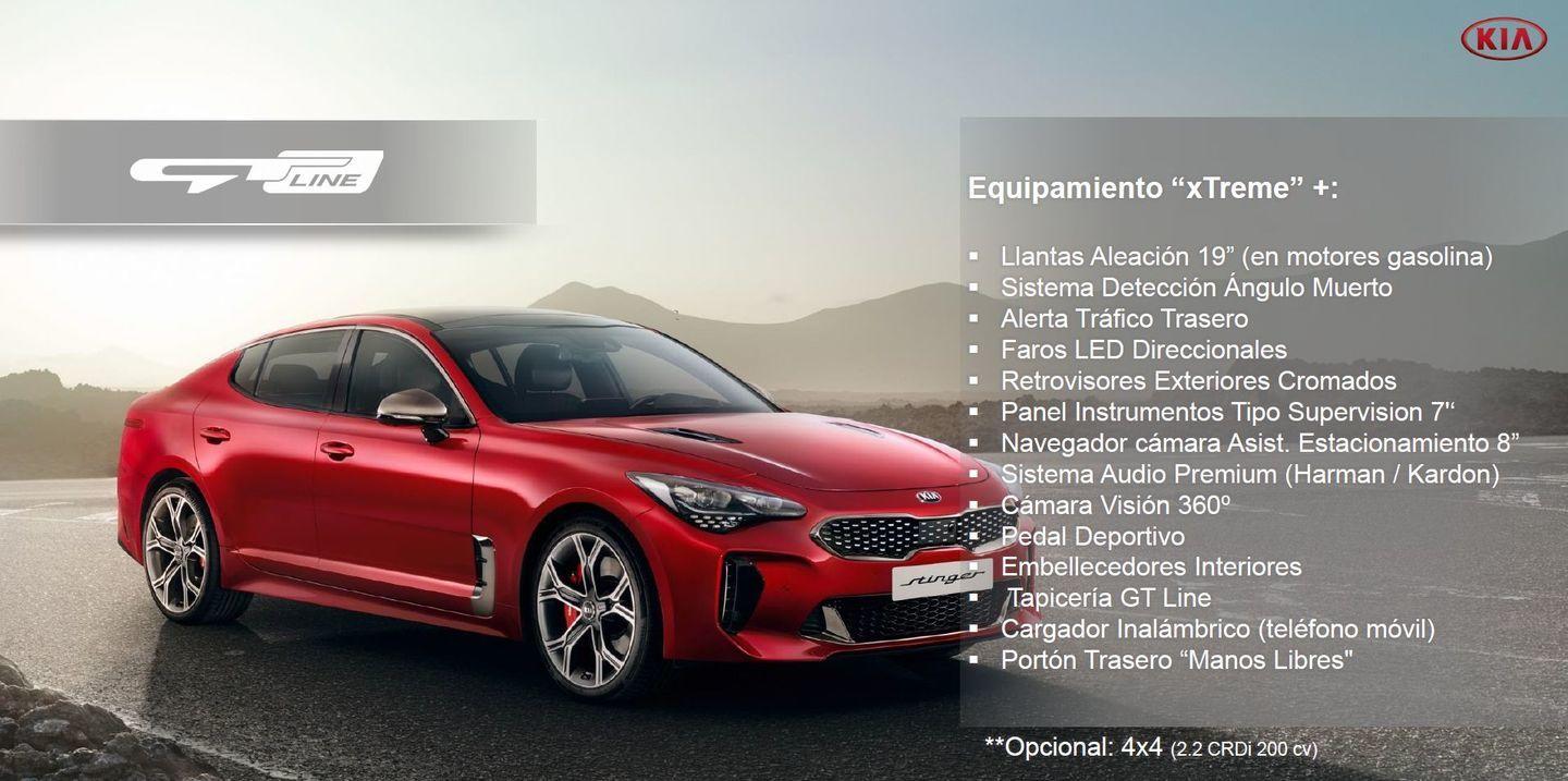 A continuación podéis ver el equipamiento de serie del KIA Stinger en sus diferentes versiones.